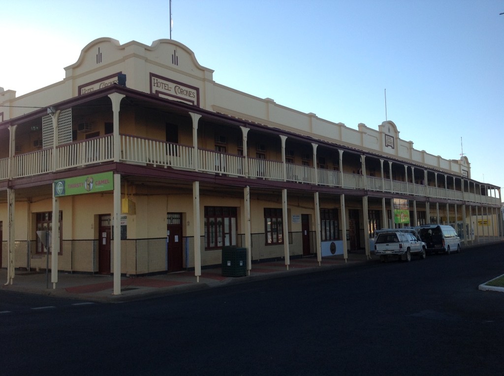 We caught a taxi into town and checked into the Corones Hotel. I found this place on Trip Advisor and it was special. Built in the 1920s by a Greek immigrant and entrepreneur it saw some pretty amazing times between the wars. Lots of historic photos line the walls. It has some really finely crafted woodwork, mainly of silky oak, like the main staircase, and stained glass windows and sculpted ceilings. We had a drink and a meat pie (what else?) in the massive bar and made a plan for the evening.