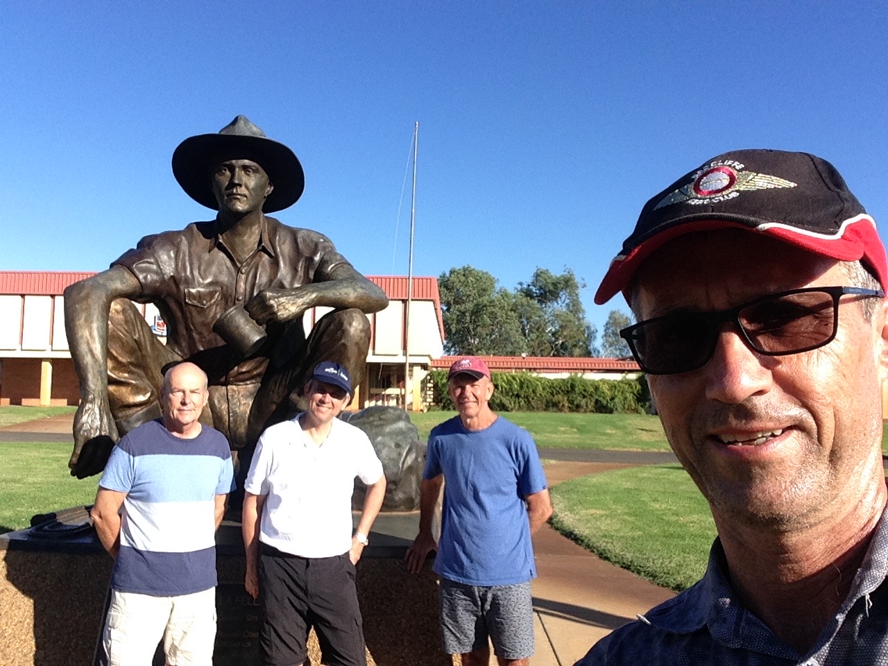 Dad had asked me to look up whether any of the Herriman family still live in Charleville. John Herriman was dad’s pilot in the bomber command mosquito squadron and had grown up there. I checked out the white pages and sure enough there was one Herriman listed. I called up but no answer. But the address was less than 1km away so we headed around there to check it out. I went up the front steps of the old Queenslander and rang the bell. Along came an elderly gent with a shock of white hair and a great bushy beard. “I’m looking for someone who might have known John Herriman” I said. “That’s me” he answered. “I’m Harry, his baby brother!” Bingo!! So we had a chat about John growing up in Charleville and how he’d moved to Brisbane to study electrical engineering at UQ then went to fight in the war. I mentioned that John was a good pilot according to dad but I’d heard that he never flew after the war and found it strange. “Well you see, I don’t think John ever liked flying” said Harry. “He just did it as a job during the war and when he got back he had no interest in it any more.” It was good to meet up with the brother of the guy that dad entrusted his life to during those many missions in the 1940s.