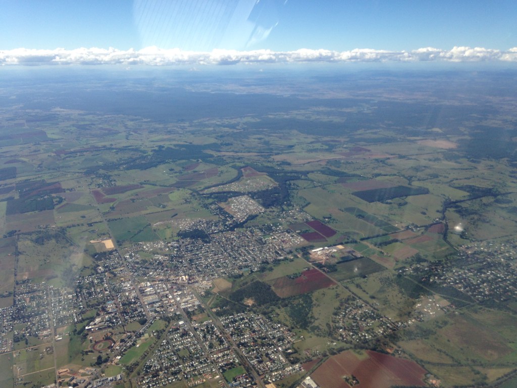 Monday dawned with clear blue skies. After a short stroll around the Charleville “CBD” we headed off for breakfast at one of the cafes that opened at 7:30. With some good coffee and a good breakfast we chatted away aimlessly until someone noticed it was almost 10am and we had to check out of the hotel. We caught a taxi out to the airport and loaded up once again. I preflighted the plane and submitted an IFR flight plan to Roma. A Rex plane arrived and parked at the terminal. MSF roared into life and taxied out to runway 13 and departed to the east, climbing to 9000ft. It was lovely and smooth up there, above the turbulence.