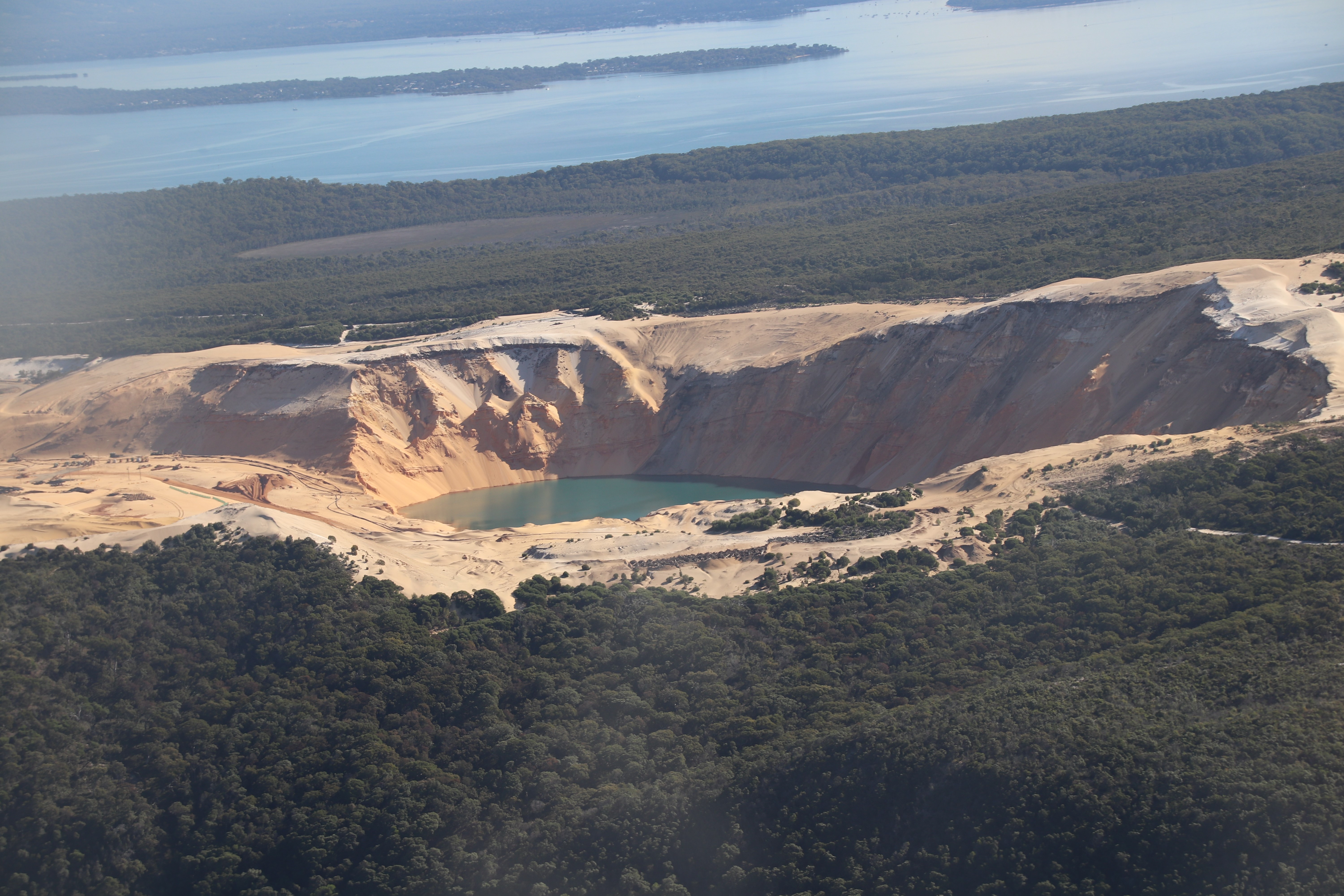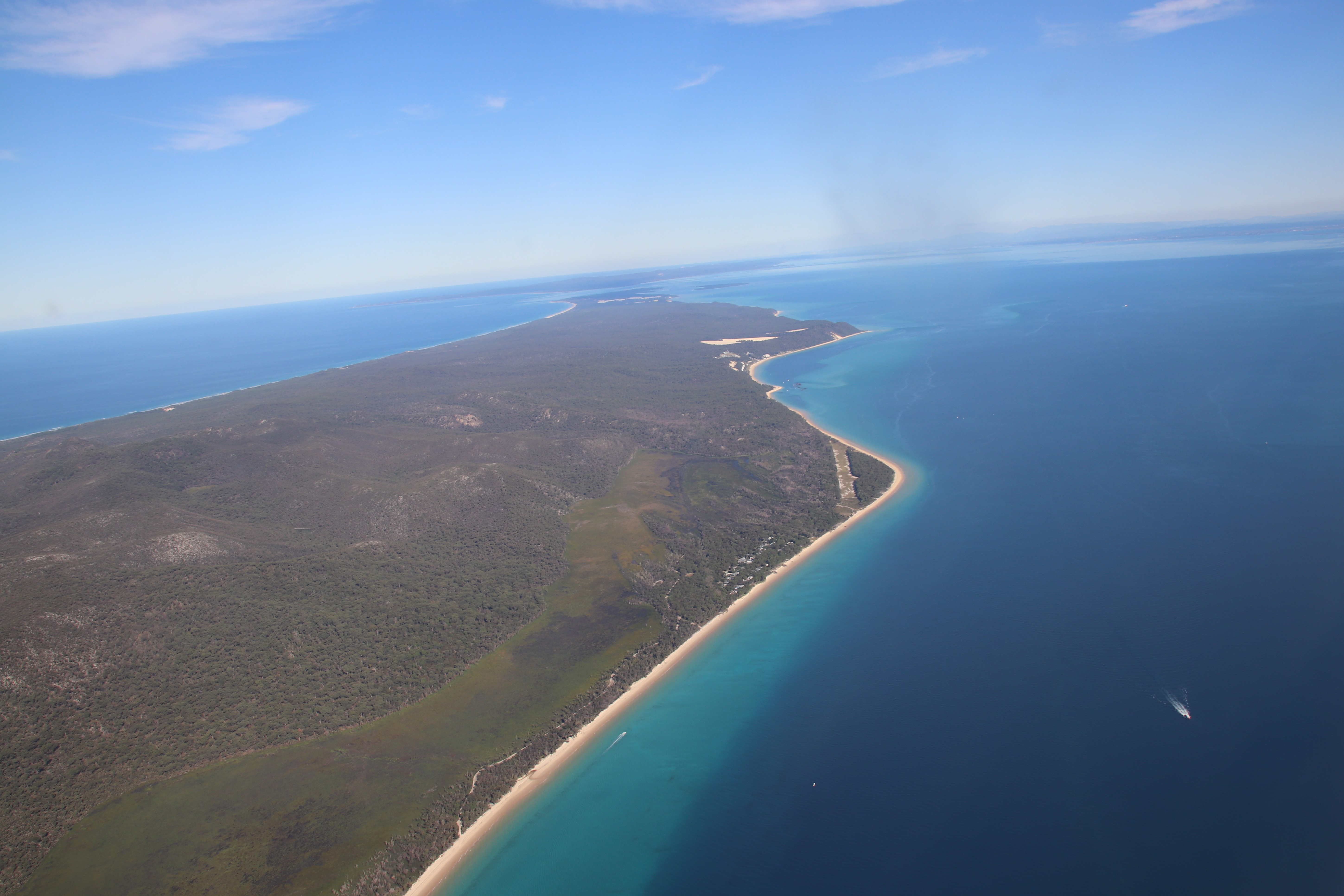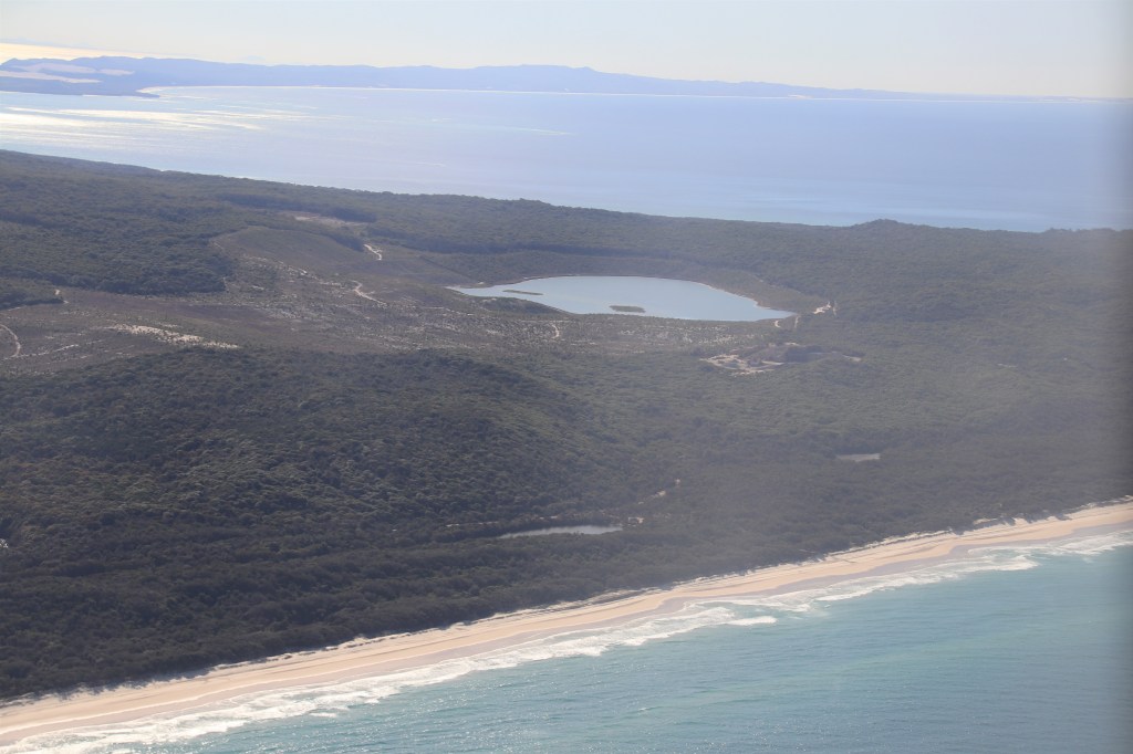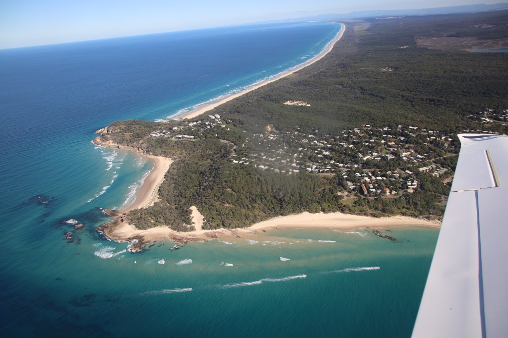 Soon we were flying up the eastern coast of North Stradbroke Island with its sand mines…