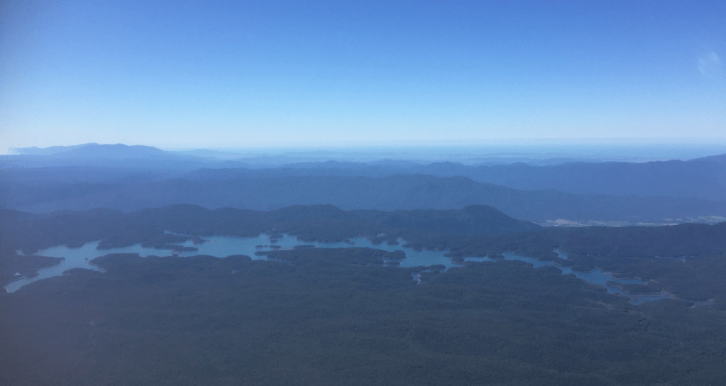 Tracking inland for the Atherton Tableland we flew over Lake Koombooloomba…