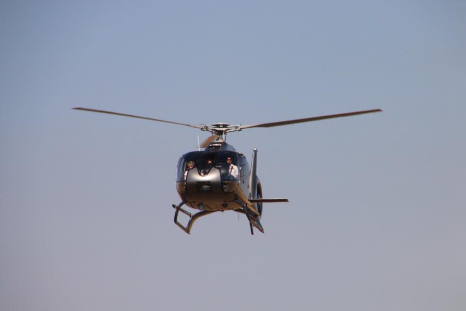 Mike and Sam decided to take a helicopter flight and with a bit of gentle persuasion had front row seats beside the captain in a Eurocopter EC 130 for a 10 minute flight over Avalon.