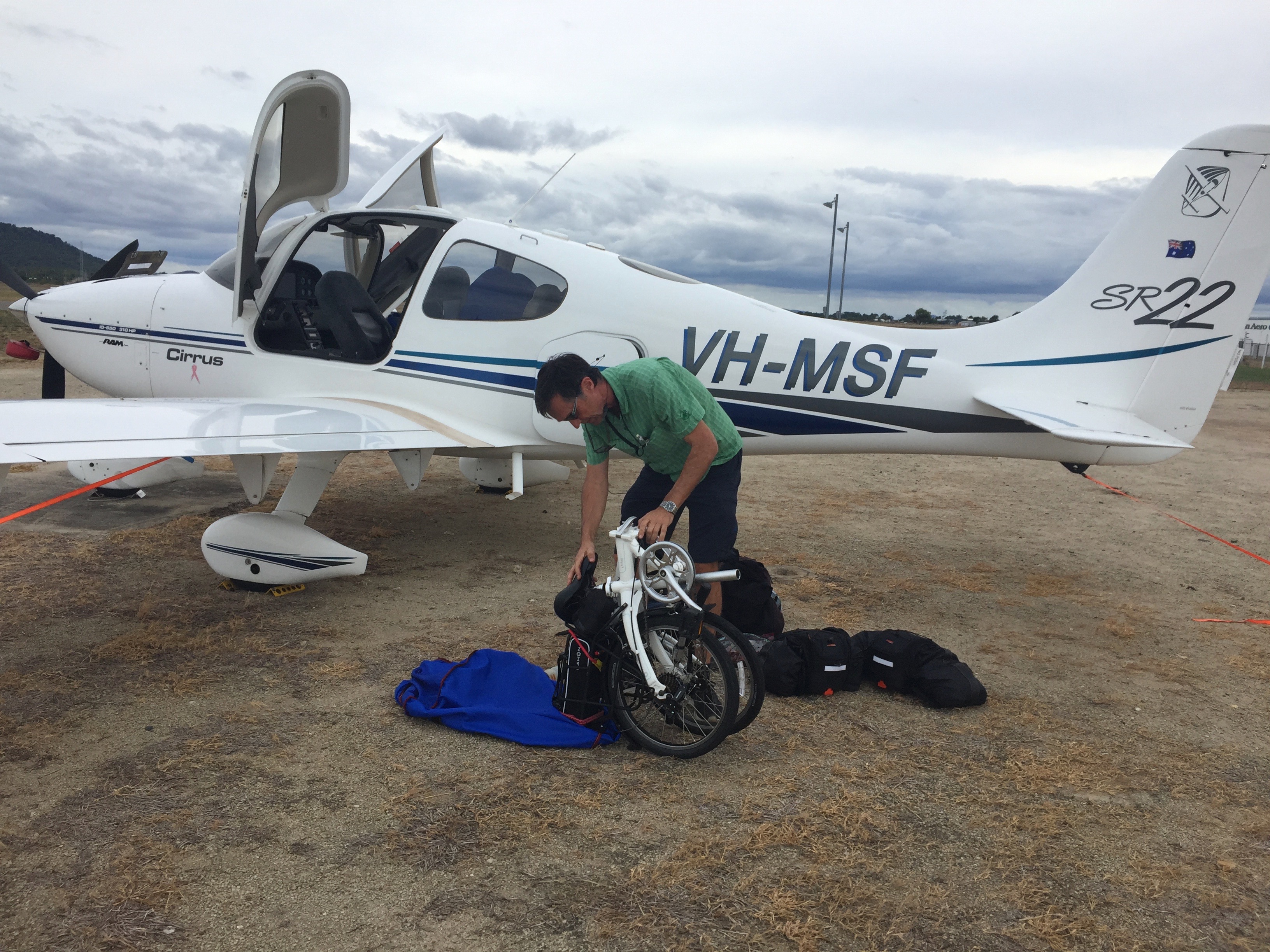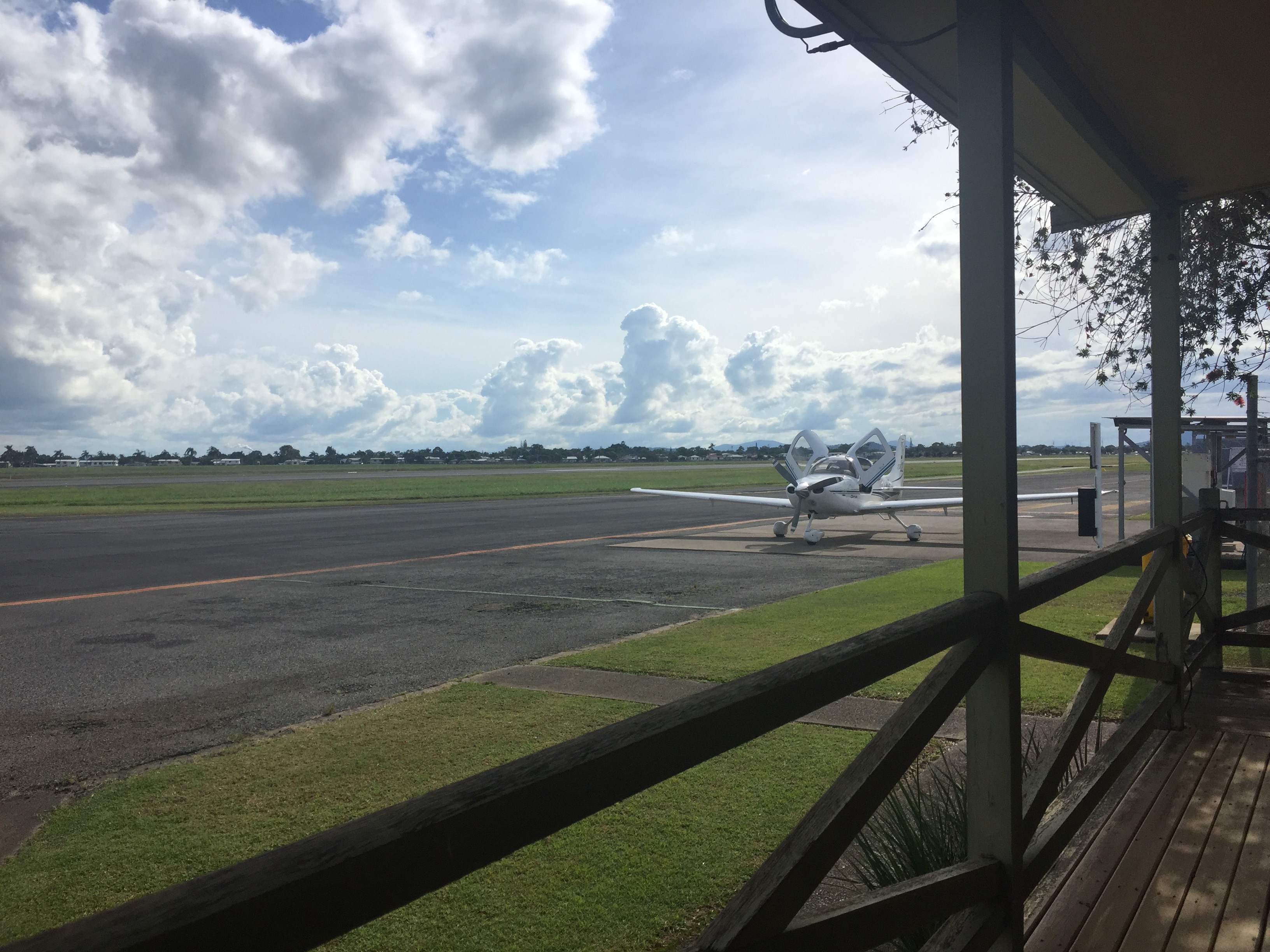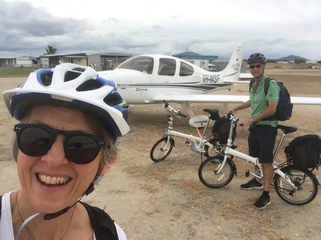 There was a bit of rain on the windscreen but apparently quite heavy rain falling below us. This was one of those times that I was really grateful for all the instrument training I’ve done over the past few years and the theory courses I did with Bob Tait. That, along with the GPS and autopilot in MSF, made it pretty straightforward. Finally ATC allowed us to descend out of the cloud and we became visual at about 3000 ft about 3 miles south of Redcliffe. It was then a simple orbit down to join a mid field crosswind for RWY 25 as there was quite a strong westerly blowing. Another smooth landing and the trip was over. As we put MSF away the clouds cleared and the sun reappeared. By evening it was glorious weather again. I think we were fortunate to have had the opportunity to arrive over Brisbane in such conditions and it was certainly another learning experience to add to the many other ones we’d had over the previous 9 days.