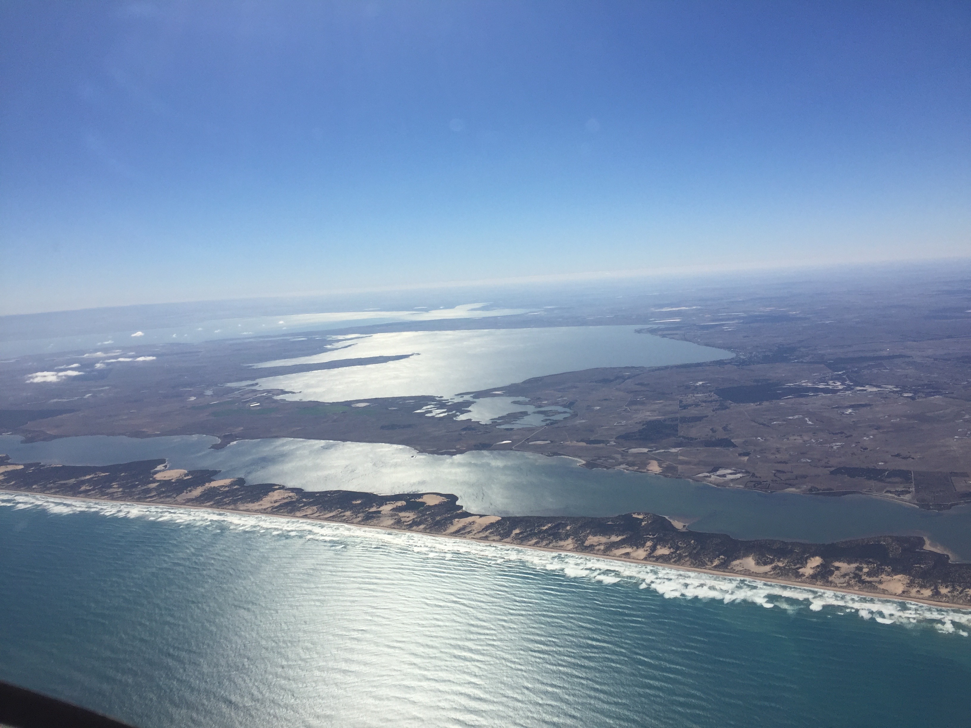 Soon we were flying up the eastern coast of North Stradbroke Island with its sand mines…