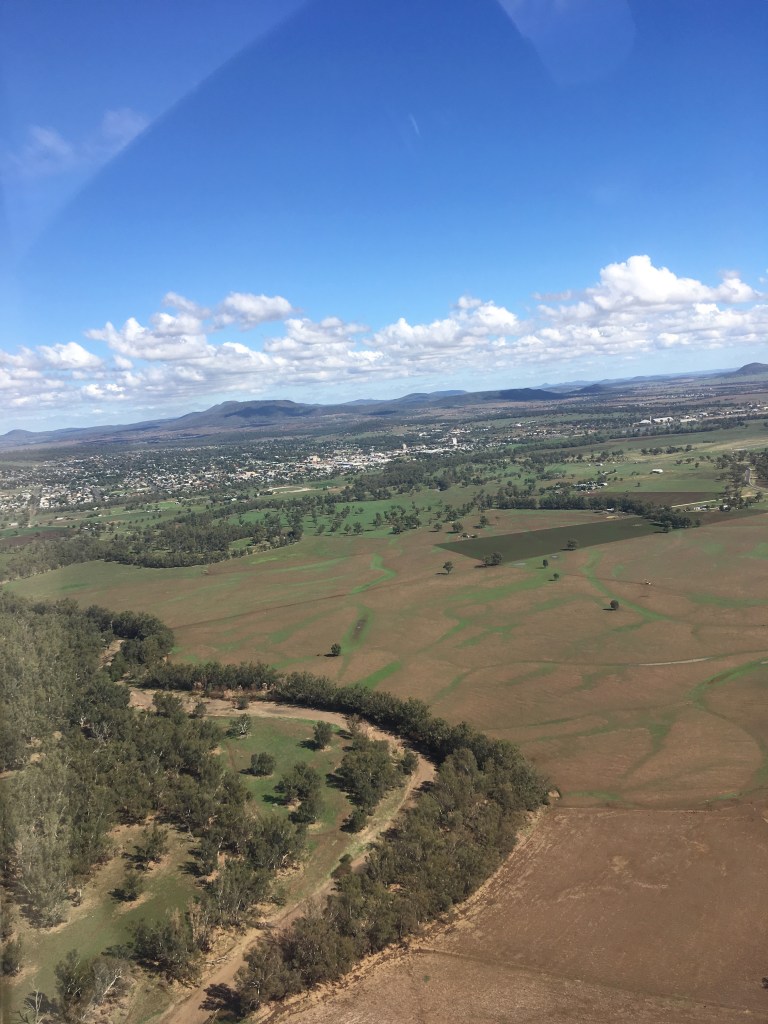 With Peter being a gliding instructor at Maccaffrey Field out near Dalby I felt we should first head out there to let him check on the condition of the airstrip from above.