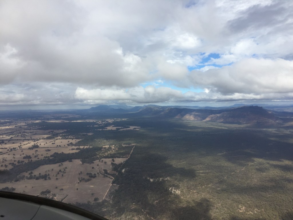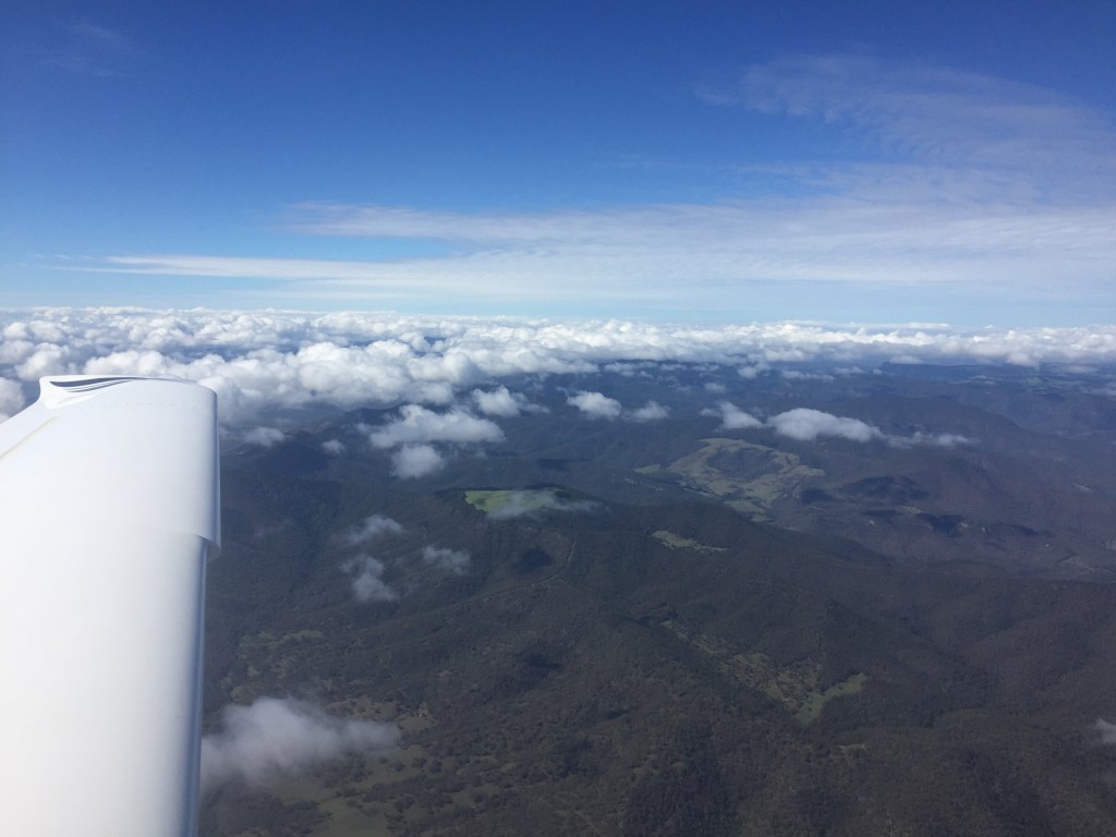 As we climbed out towards the north and headed for the dividing range the clouds gathered below us. There wasn’t a lot to see down below and soon we were in and out of cloud at 7000ft.