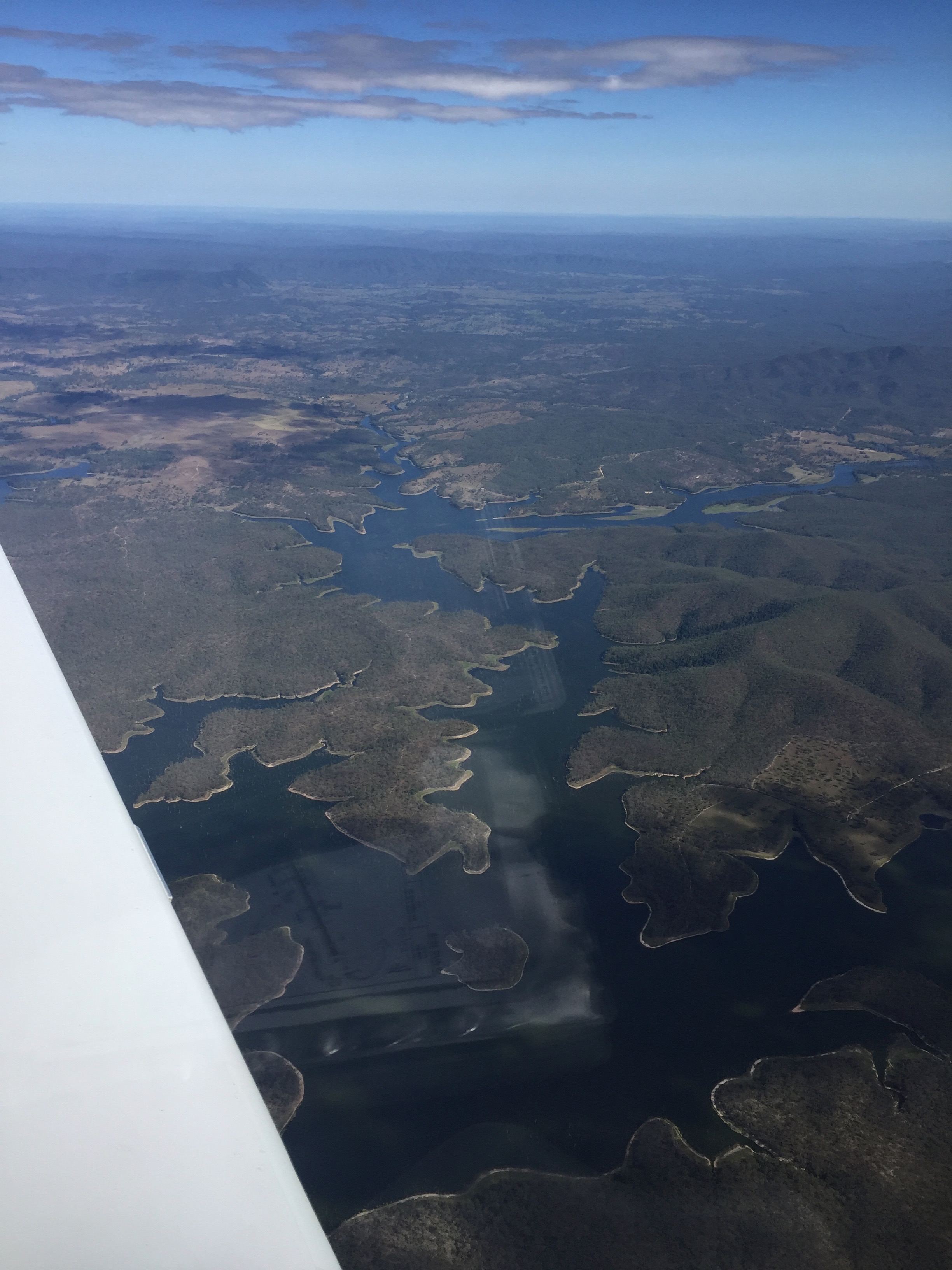 In February 2019 on a beautiful Sunday morning a group from the aero club flew from Redcliffe over to Archerfield where we met some fellow aviators from the Royal Queensland Aero Club for a flight to the RAAF base at Amberley. I went as a passenger in MSF with Mike, Bryan Galvin and Ashleigh Hodge, one of our recently graduated CPL pilots. On the way we passed by Lake Samsonvale.