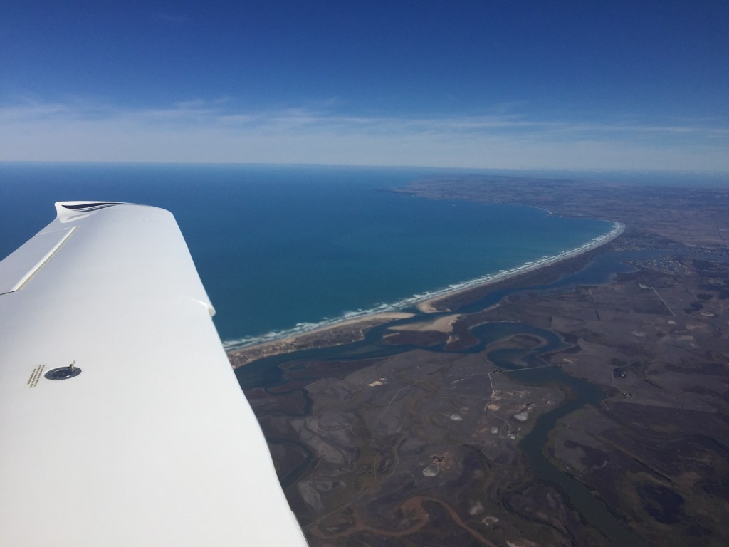 On landing at Cambridge we were met by two old friends of Mike who were keen to go flying. Given the magnificent weather, and the fact that the Cirrus Life wasn’t due to start until the next day, how could we say “no”? We unloaded our gear and then took off again, to the east this time. Flying down the magnificent coastline we passed over Bruny Island, and the mouth of the Huon River on our way to South East Cape.