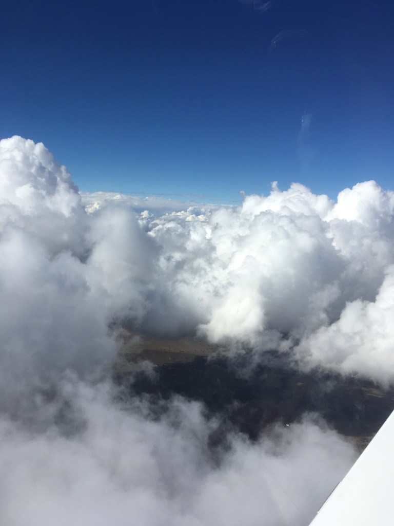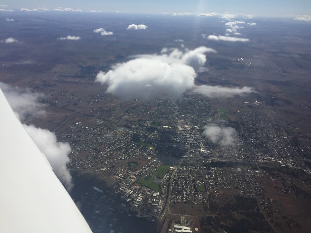 Sure enough, as we headed north at 9000ft the clouds gathered and by the time we were over Inverell we were in and out of puffy cumulus.