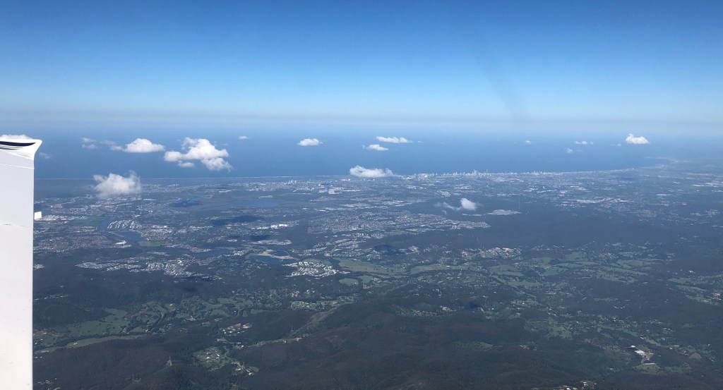 We flew IFR on the home journey at 8000 ft, passing over the Gold Coast and its hinterland.