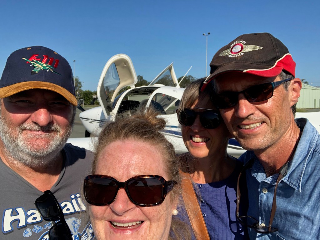 Evans Head is one of my favourite spots to fly for lunch. It’s a spectacular 40 minute flight via the Moreton Bay islands and the Gold Coast and there is a great sealed runway and the aviation museum on site that always has interesting displays and tours by retired RAAF engineers and aviators. You can also have a lunch at the surf club overlooking the beach or the pub, RSL or one of the cafes. In March 2019 Debbie and Paul Price were visiting from Melbourne so we decided we’d treat them to a flight in MSF to Evans so they could check out the F1-11 in the aviation museum and then have lunch at the surf club.