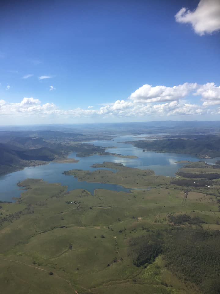 Taking off to the north west it was on to the Lockyer Valley and over the top of Gatton. Lake Wivenhoe appeared to be fairly dry for the time of year. February is nearing the end of the wet season in Brisbane so normally the lake, which is Brisbane’s largest water storage facility, should have more water in it.