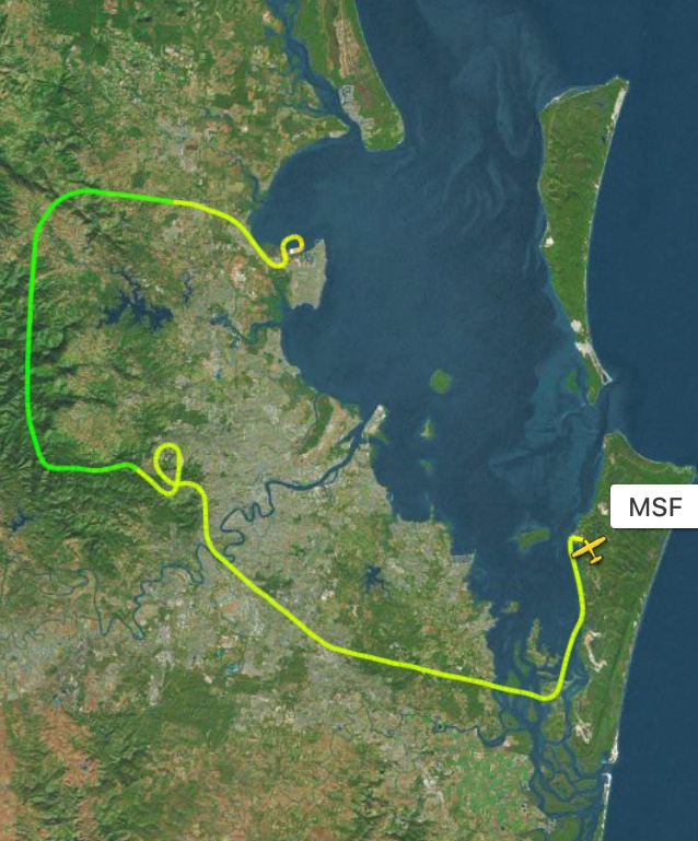 North Stradbroke Island (or “Straddie” to the locals) is located off the coast from Brisbane and is a bit of a local secret as a place to escape to for old style beach holidays. The largest town, Dunwich, has a small airfield with a grass and gravel strip. The local aeroclub likes to attract air tourists with a breakfast “fly in” held on the third Saturday morning each month. On Saturday 16th October 2021 my sister Liz and brother in law David joined me for a blue sky flight to the monthly breakfast. You may have seen further down the list of postings that one of my early flights was for breakfast at Straddie, a few years ago. I also flew there once on my way to Coffs Harbour. We’ve been quite a few places since but it’s always nice to go back and this was the first time in MSF.
