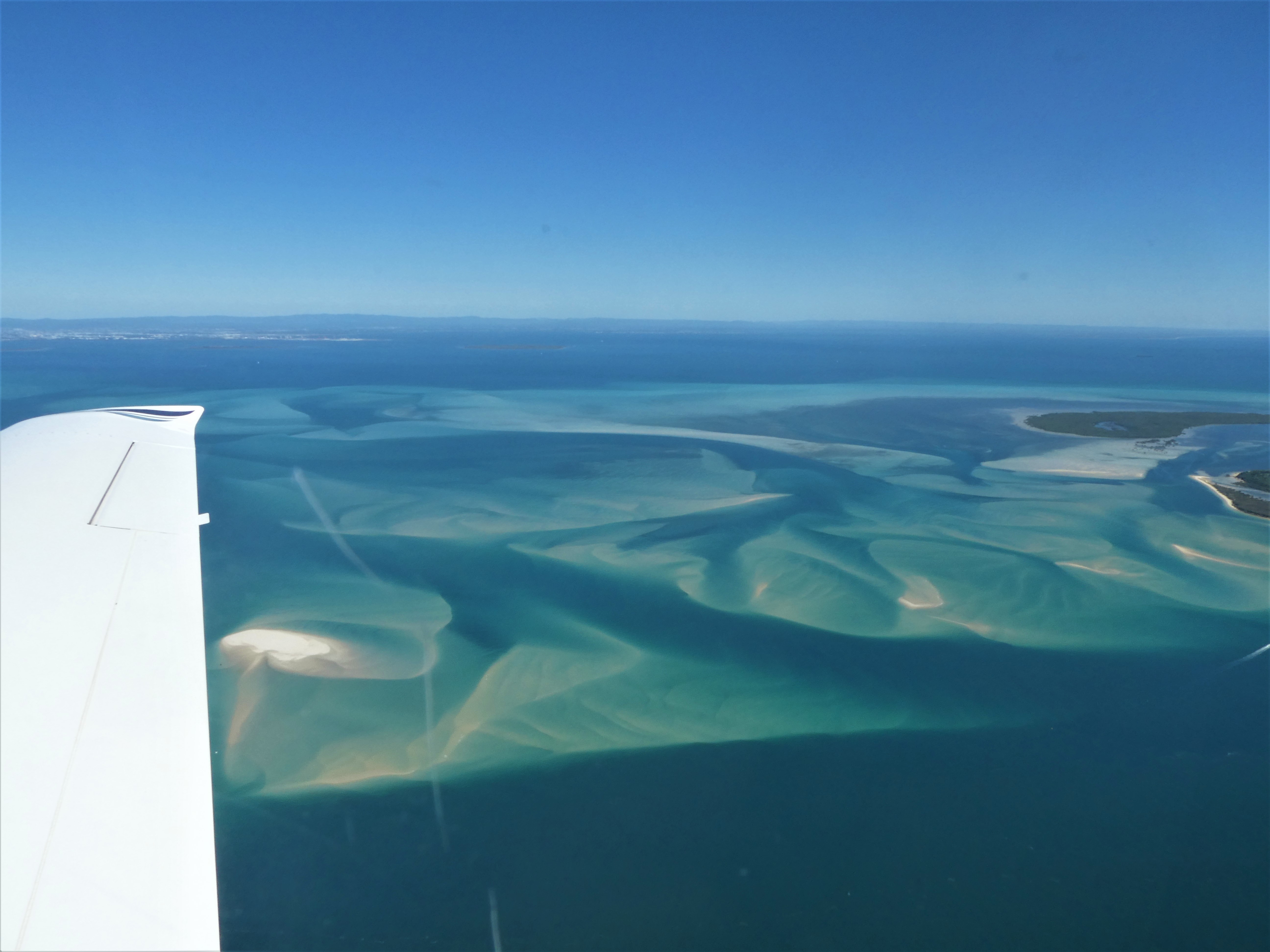 The 15knot westerly caused a few bumps over the land but it was smooth as we crossed the bay and flew down the west coast of Moreton Island to Dunwich.