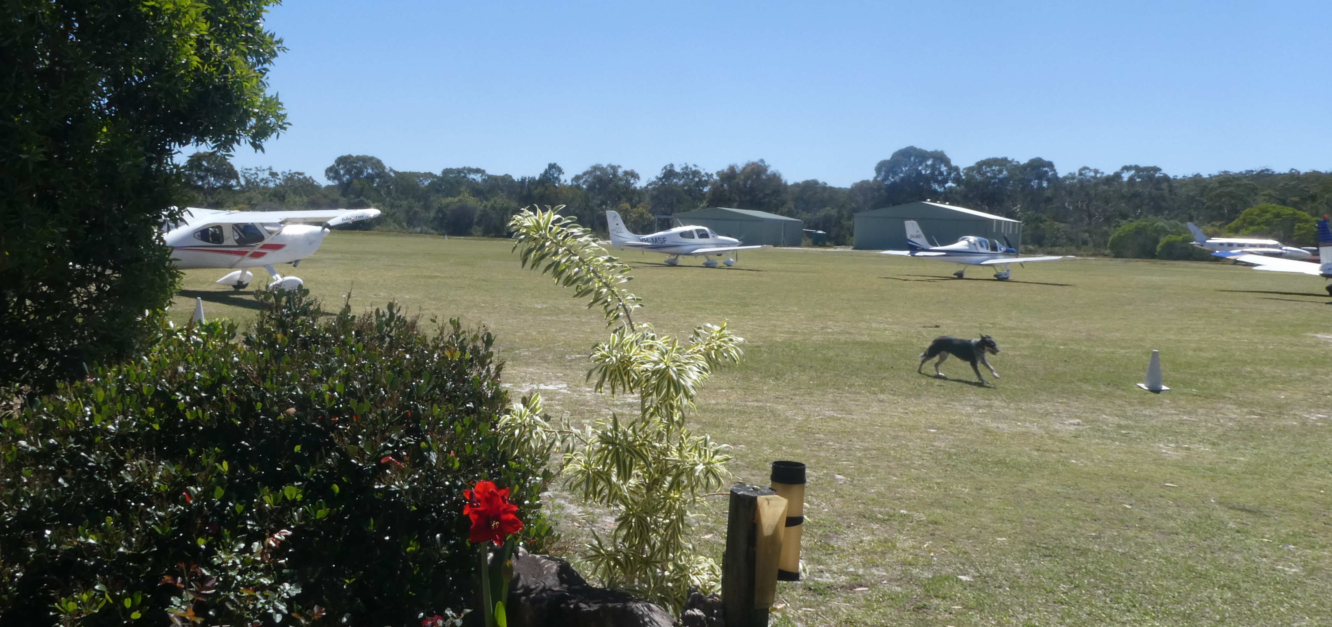I mentioned that we’d have to inspect the windsock first to confirm the cross wind at the Dunwich strip wasn’t too bad. If it was too strong we would have to give the landing (and breakfast) a miss. We flew over the top of the airfield at 2500ft and the wind looked fairly calm. Another aircraft was taking off from RWY33 as we descended to circuit height and joined midfield crosswind. On final the windsock showed almost no wind and we touched down lightly, using most of the 800m long grass strip to pull up.