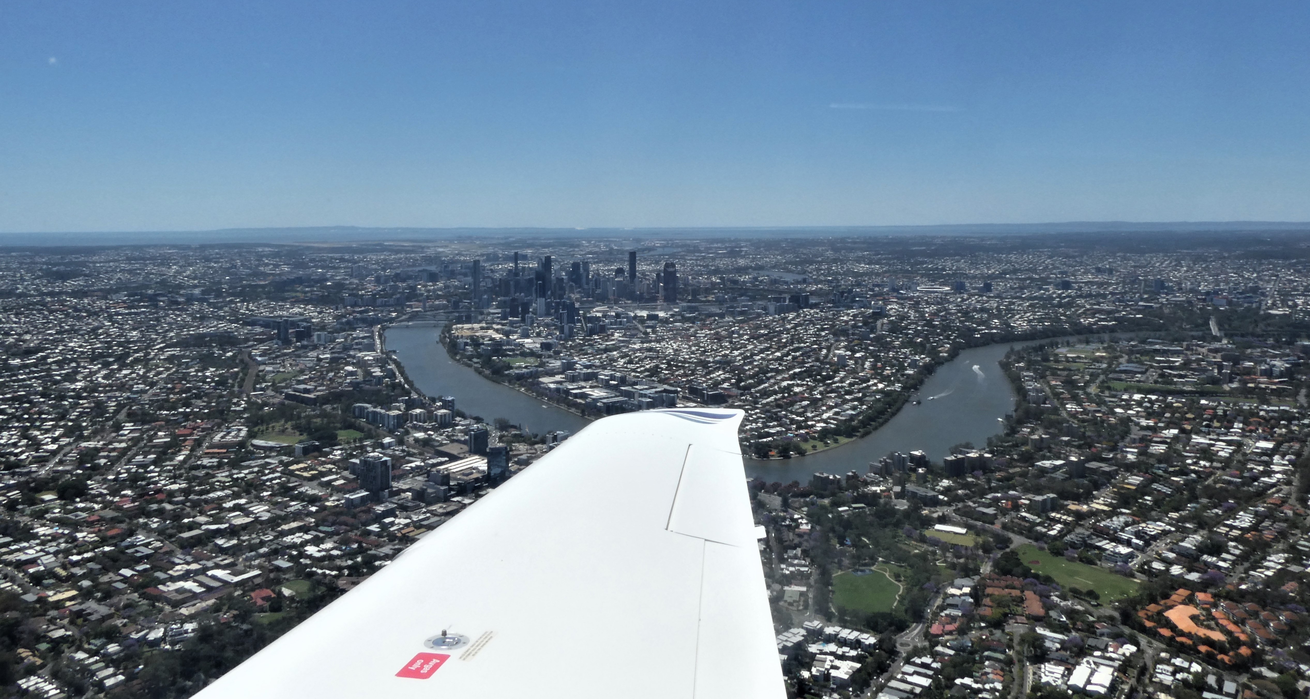 From there we flew between the Brisbane CBD and Mount Coottha before doing an orbit over The Gap and passing over Mount Glorious on our way back to Redcliffe.