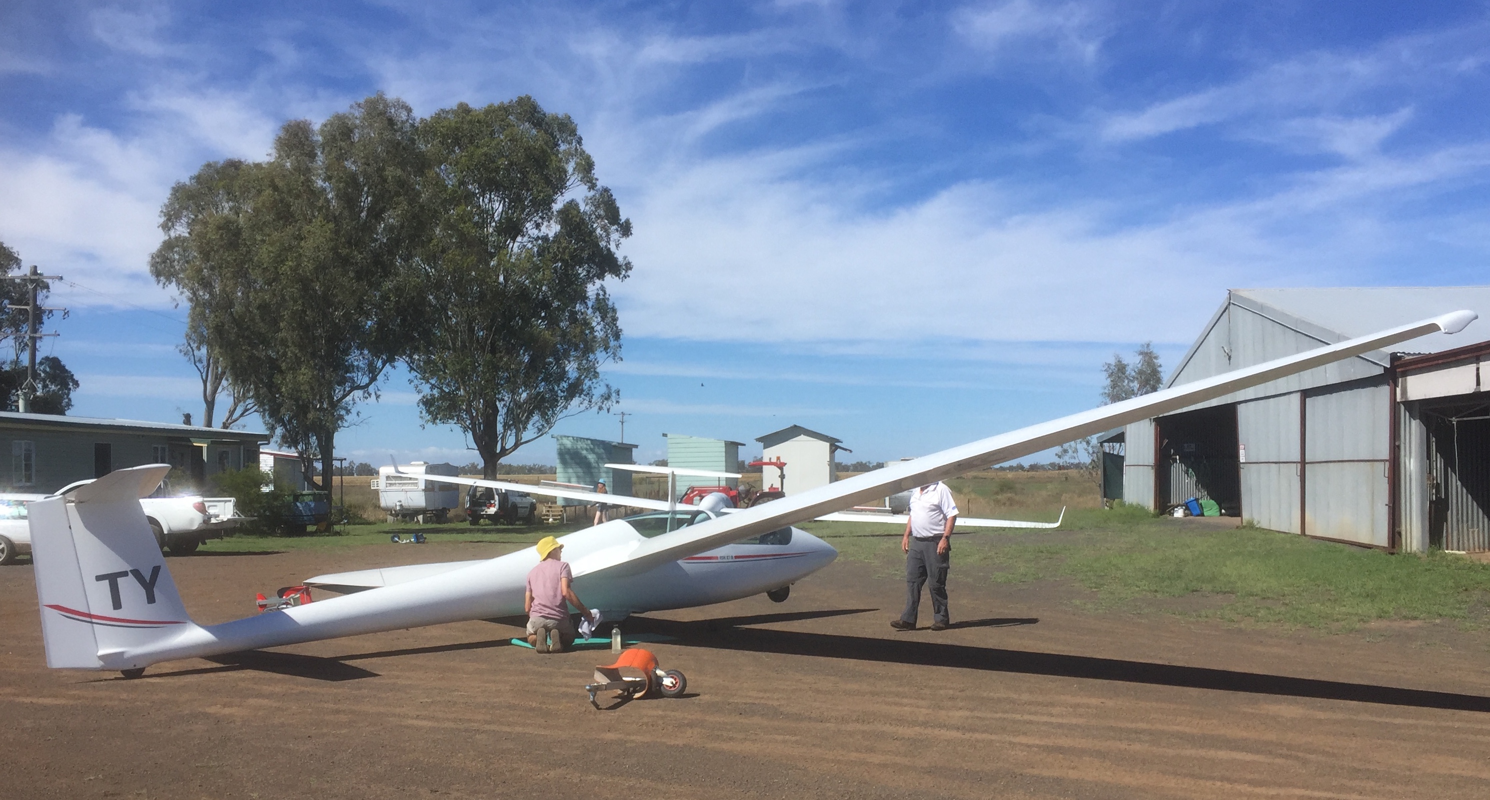 At the end of the day we were instructed in how to clean the gliders (remove all the bugs) and to vacuum them to remove any prickles that had crept into the cockpit. The runway is covered in prickles that can easily be brought into the glider when you climb in and it’s not pleasant if you sit on one of them.