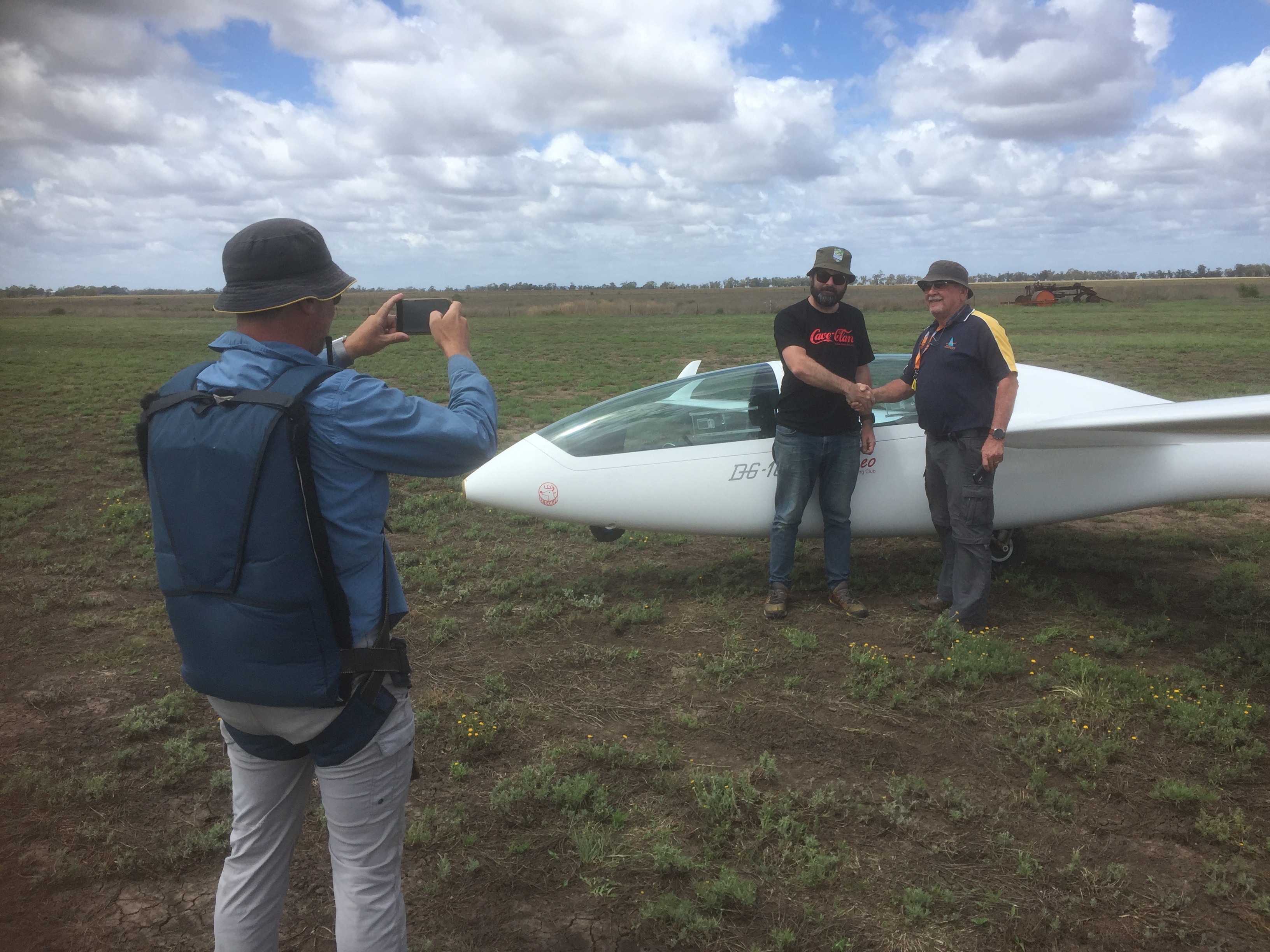 And what happened next? I saw Oscar and Monique approaching with a couple buckets and discovered the “age old gliding tradition” of inducting a first solo pilot into the gliding fraternity by soaking them with a bucket full of water! Lucky we were in Queensland and it wasn’t winter is all I can say. After some candid snaps I went and changed into some dry clothes (and shoes) then headed out for one more solo flight to complete a perfect day of flying.