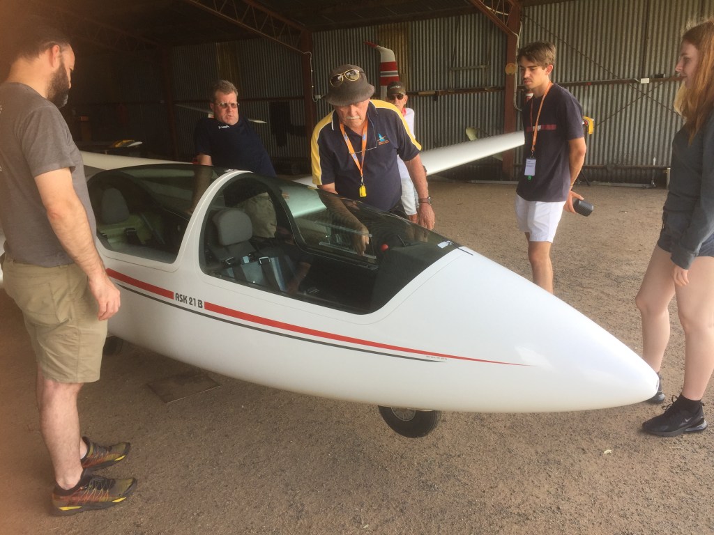 They introduced us to two other students, one who is planning to join the Qantas academy at Wellcamp Airport in January 2022, and the other who is in the first year of a double degree of engineering and aviation at Griffith Uni in Brisbane. Oscar had already had a few glider flights in the past while Monique had never flown one before. In fact the first time she’d every flown on any aircraft at all was a few weeks before on a flight from Cairns to Brisbane.