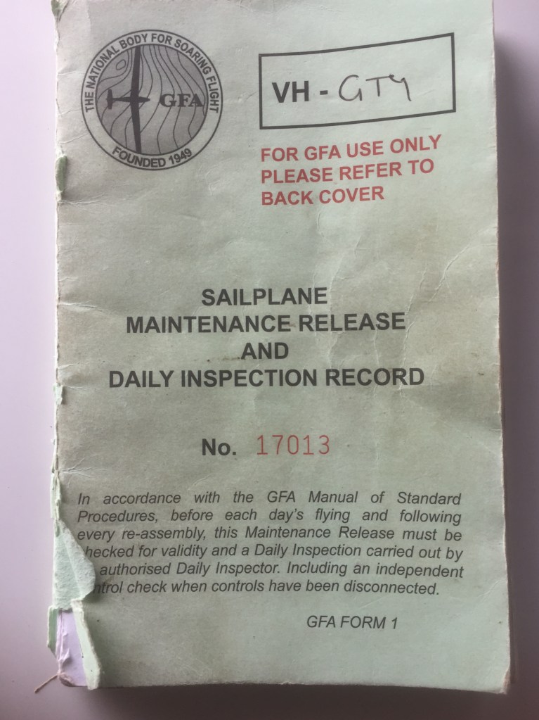 On Friday it rained nearly the whole day so we used the opportunity to catch up on theory and practise our daily inspections. These are much like the daily inspections on powered aircraft and, as with powered aircraft, there is a maintenance release that requires signing off prior to the first flight of the day. It’s quite a thorough procedure and the maintenance release includes a detailed description of all the areas that need checking.