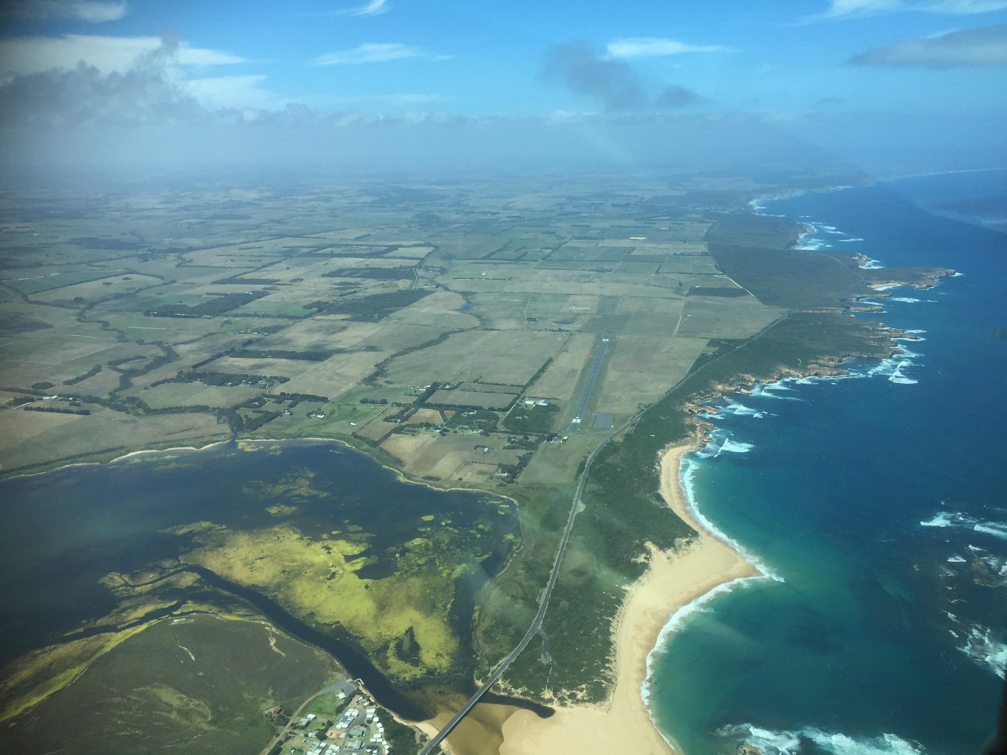 Back at the airport the three of us climbed in and took off to the south east, passing over the city of Warrnambool and heading to the coast. Soon we were over Peterborough and its large sealed runway. This is where the picturesque coastline began.
