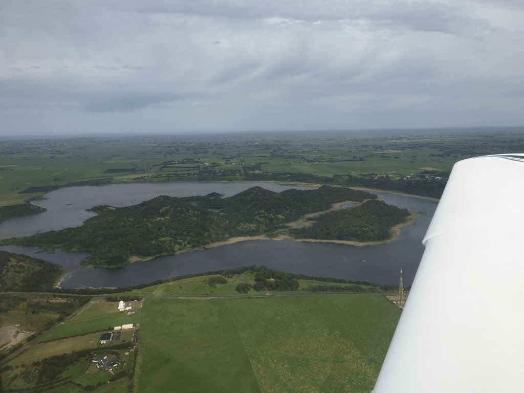 Heading back to Warrnambool we flew over the Tower Hill volcanic crater.