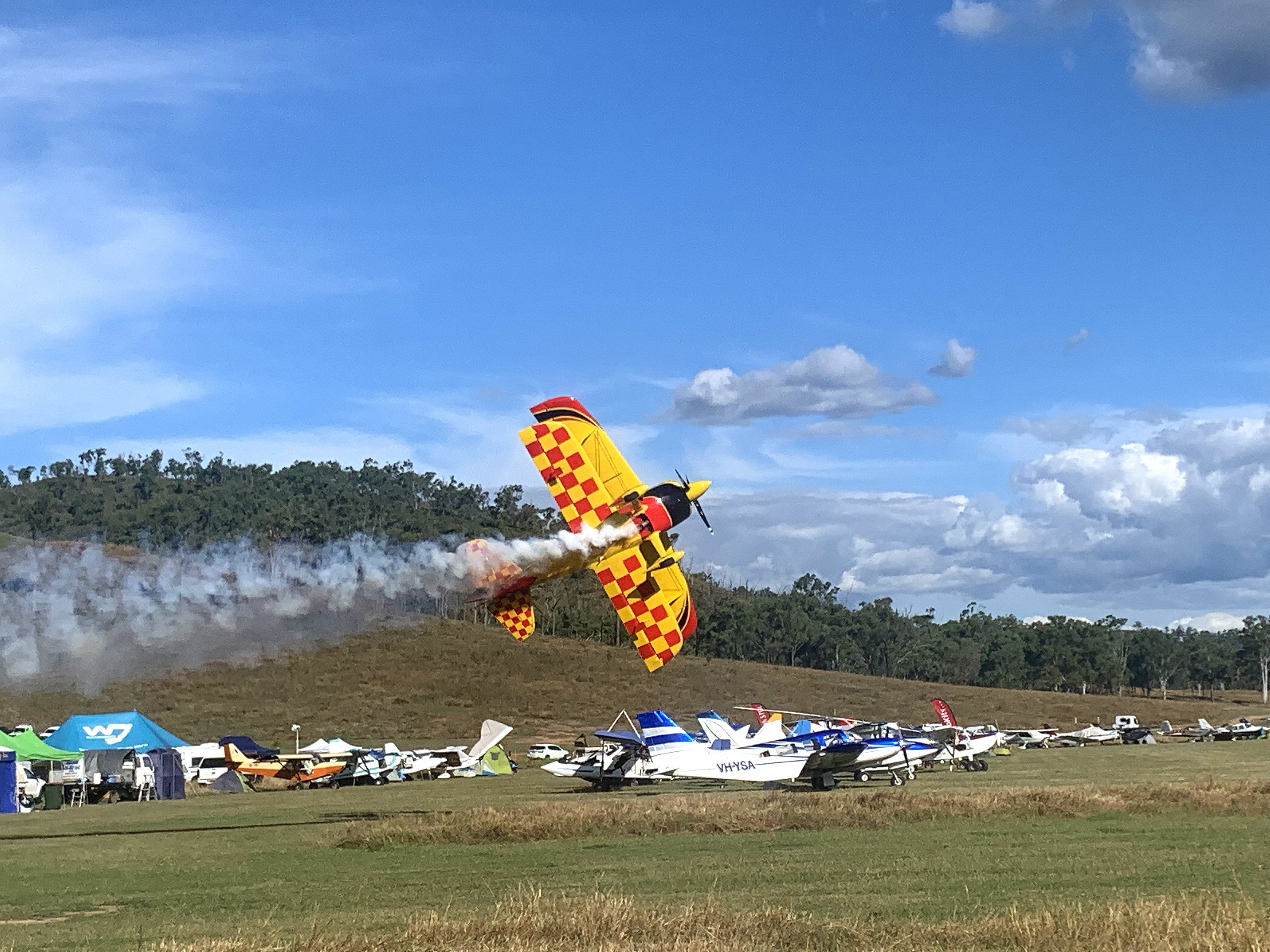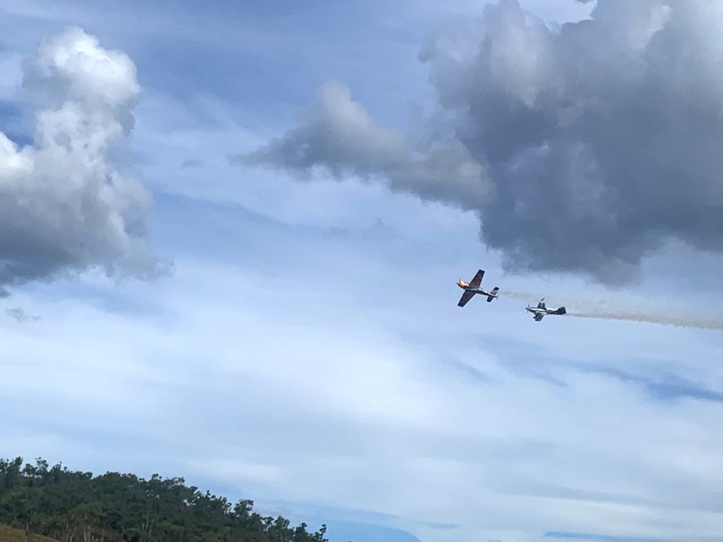 Saturday 28th dawned clear and bright. A perfect morning for flying. I met Brett out at the hangar at Redcliffe at 7:30 and after filling the tanks we were in the air just after 8:30. It was a smooth flight direct to Old Station, about 90 minutes in all, passing over familiar territory like the Sunshine Coast Hinterland, Biggenden and Mount Perry where I’d done a cross country flight during my CPL training. We flew IFR as, based on my previous visits to the airshow, I was expecting quite a few aircraft converging on Old Station and wanted a heads up from Air Traffic Control. It was very quiet however and we only passed one other aircraft, a Jabiru about abeam Monto, on the way up.