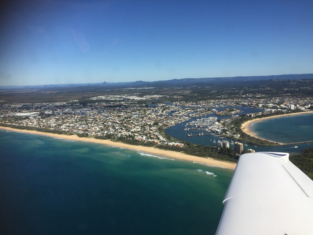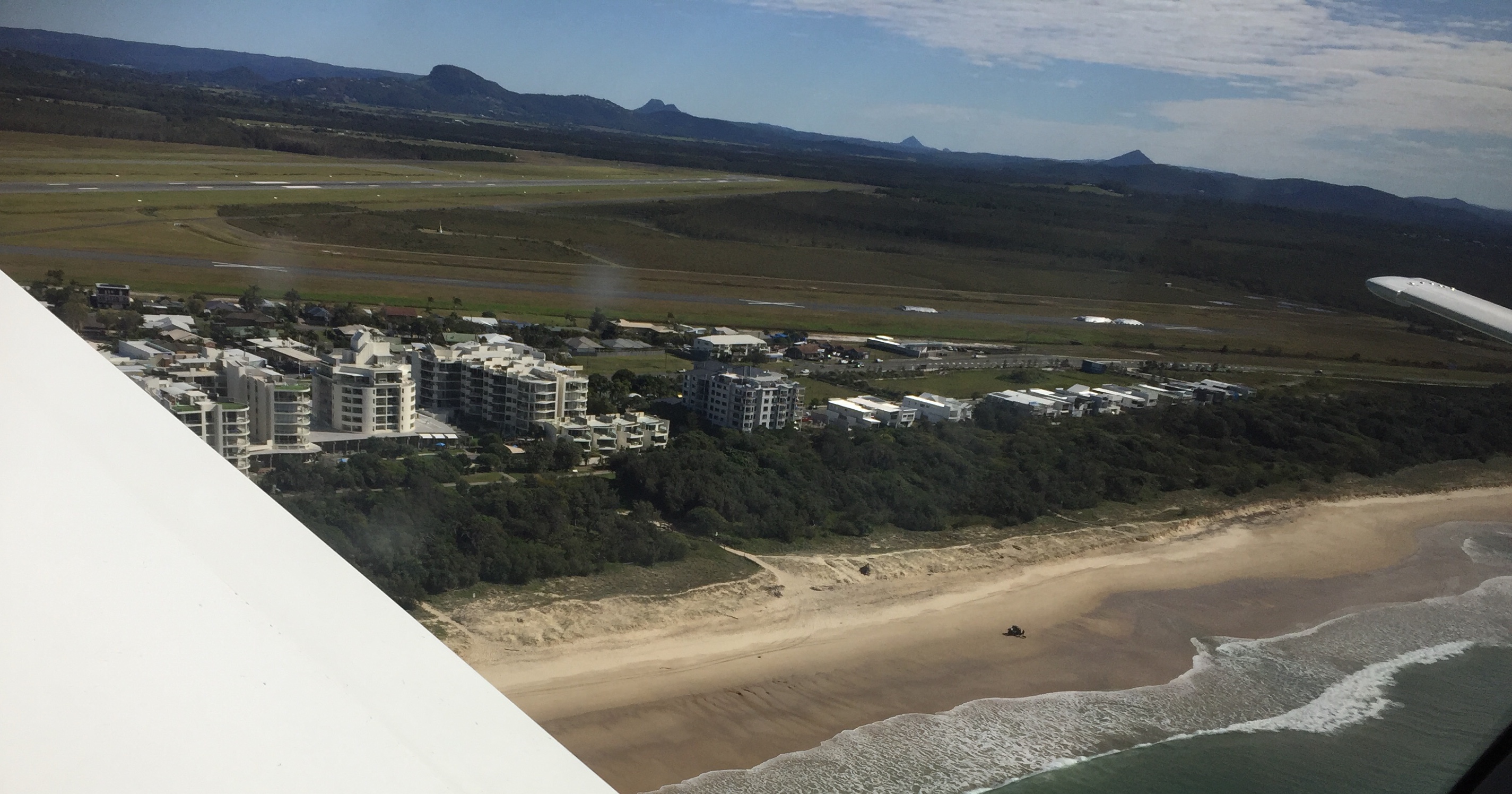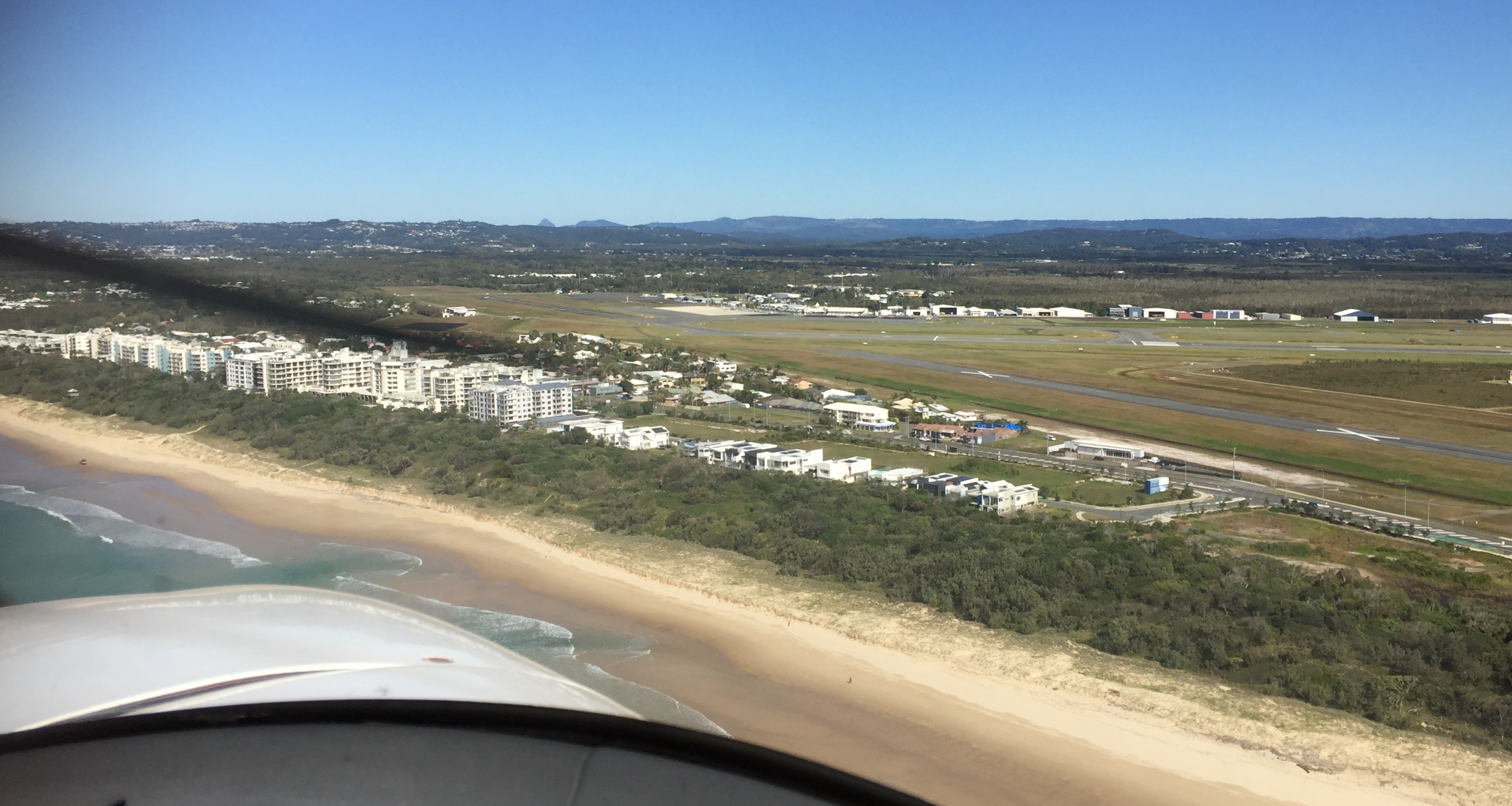 On Wednesday 8th June 2022 Mike Cahill wanted to fly the short hop from Redcliffe to the Sunshine Coast (YBSU) to practise his procedures for flying in and out of the D-Class airport with its control tower. He was planning to pick up some friends there in a few weeks time and wanted to check where he should tell them to wait, how to gain access for them and how to deal with the new arrangements since runway 13/31 was constructed together with its new taxiways. He asked me to accompany him as an extra set of ears and eyes and provide advice based on the fact that I’d flown in there a couple of times since the new runway was commissioned. It was a perfect day and we flew up via Bribie Island, joined downwind for RWY13 and landed part way down, leaving less taxi distance to the exit ramp. Taxiing to the General Aviation apron to the south of the RPT apron we shut down, walked over to Gate 4 that he could use to let people in and then returned to the aircraft. We taxied out and did an intersection departure on RWY 13. Mike had spoken to the tower beforehand and arranged to do a left turn over the water after take off so that he could fly past the apartment block where his daughter and granddaughter live, to “waggle the wings” so to speak. We flew past, did a 180 and headed south again over water past Maroochydore and Caloundra and back to Redcliffe.