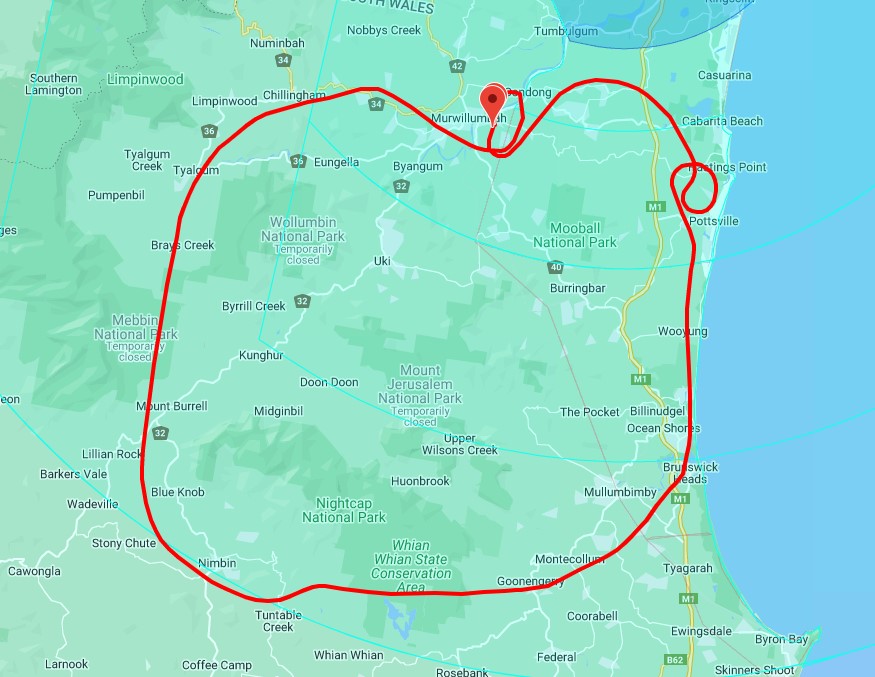 I’d wanted to fly there and land for some time but finally on Sunday 10th July 2022 the planets aligned. Our friends Harry and Rianne would be home and were keen to go for a flight around the area. My pilot friend Luc and I had been discussing a flight there for a while as he was a member of the Murwillumbah Aero Club a while back and knows the area so he agreed to go as navigator and co-pilot. And the weather was fine! We had had some rain in the week leading up to the day so I checked with the aero club president, Martyn, who warned me against flying any earlier as the airstrip had been a bit soft but after some stiff westerly winds on Thursday and Friday said Sunday would be fine.