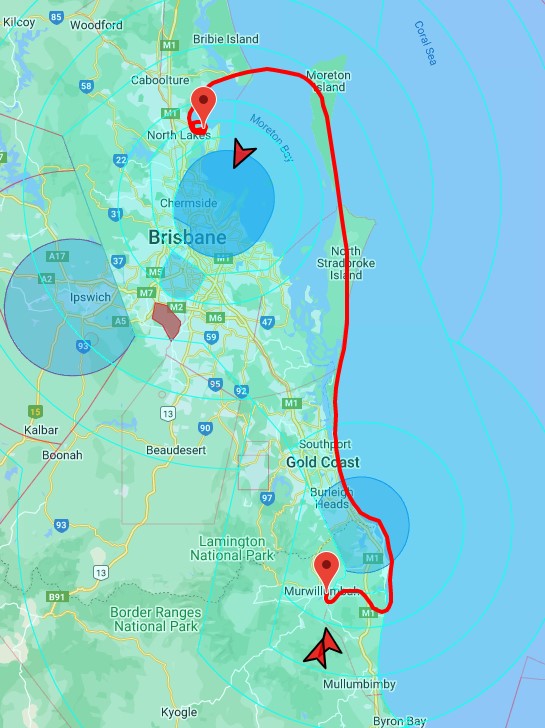 Over Hastings Point, we obtained a clearance from Gold Coast Tower to transit through their airspace along the coast at 1000ft.