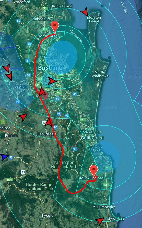 A jet took off to the south as we passed the Gold Coast airport. Otherwise there was no other traffic flying in, out or around. We had the airspace all to ourselves!