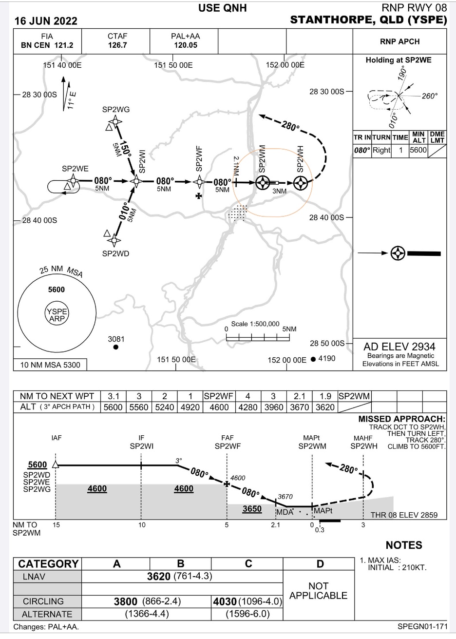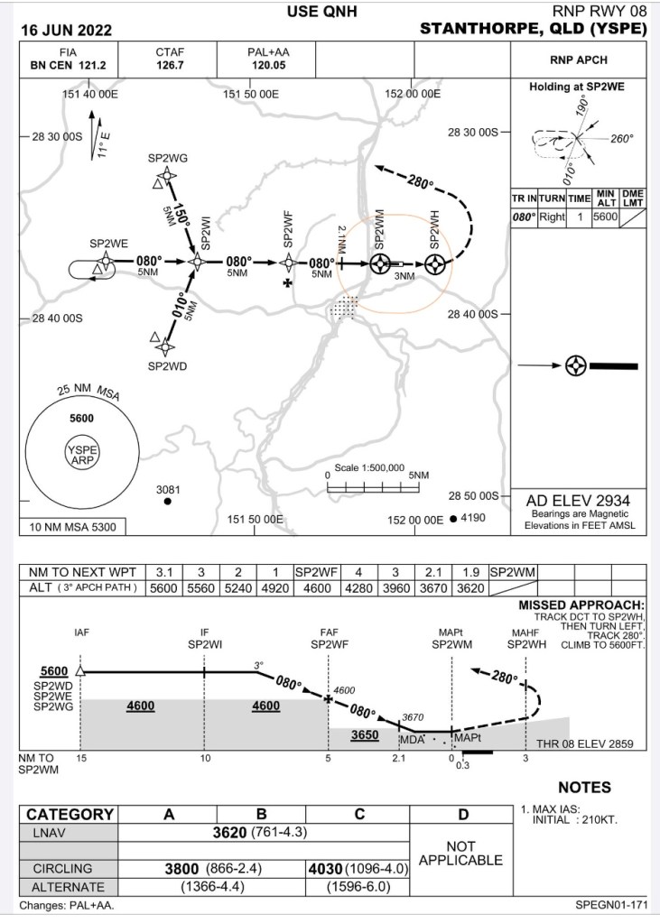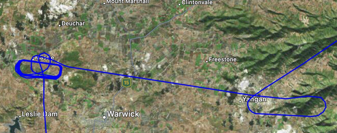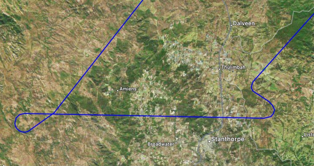 On completing the sixth touch and go, we climbed within the circling area to the 10 mile lowest safe altitude of 4200ft before tracking for Stanthorpe, climbing to 6000ft. At 25 miles out of Stanthorpe I asked ATC for traffic direct to the waypoint Whiskey Echo on the RNP for RWY08.