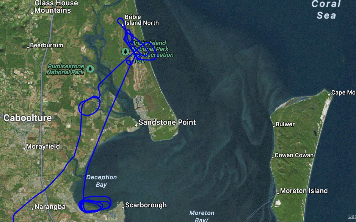 Taking off and turning onto downwind we noticed how the wind was pushing us away from the runway. My first attempt to glide in was thwarted by another aircraft in the circuit ahead of us, meaning that we couldn’t safely conduct the glide while maintaining sufficient separation. I did a go around and set myself up on downwind again. The next attempt I misjudged the strength of the wind and had left myself a bit short of the threshold so when we were about 300 ft I applied power and went around for a third attempt. This time was better and I managed to land the plane on the runway successfully. Tick! Then it was off to Bribie Island for the air work.