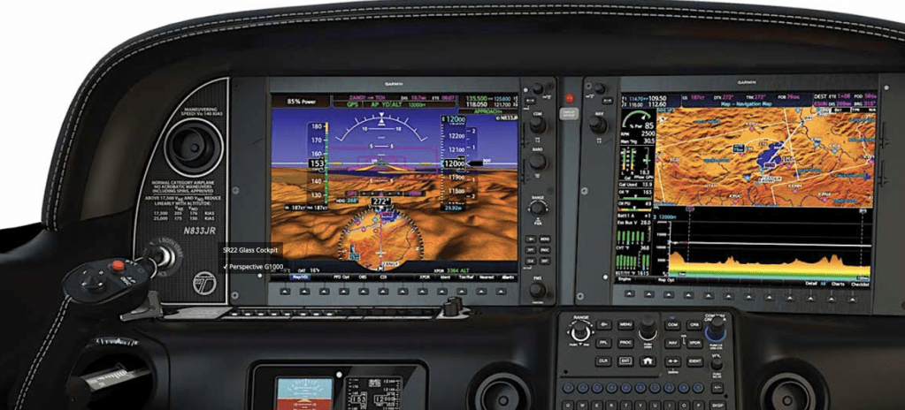 The glass cockpit in the newer Cirrus is similar to the G1000 avionics system in VH-ROC, the Cessna 182 that I flew while training for my CPL in 2020/2021. Both are Garmin avionics systems, but the one in the late model Cirrus is called Perspective Plus and it does a bit more than the G1000 system in ROC.