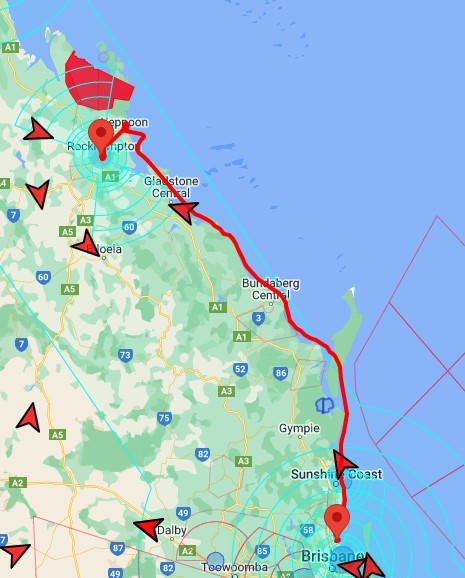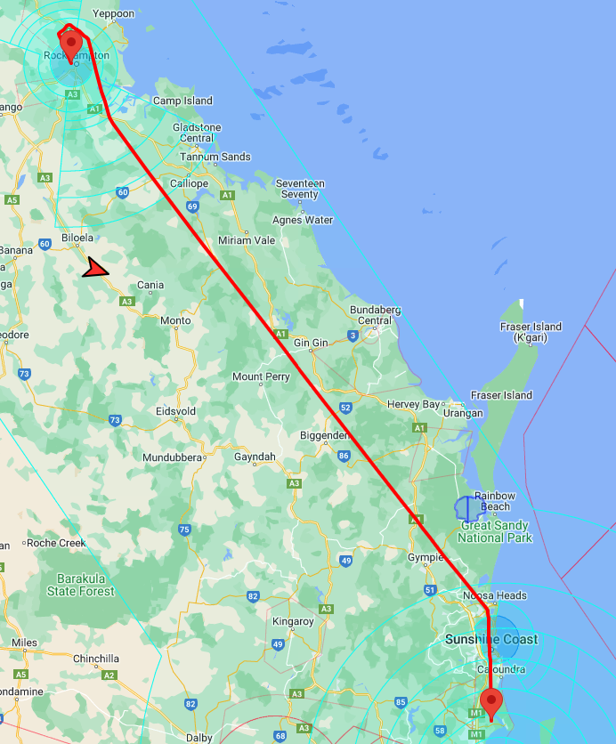I was switched over to Brisbane Centre who requested that I extend my first leg beyond my planned waypoint directly over the Sunshine Coast Airport to allow other aircraft to descend into it. Once we’d passed and were overhead Noosa Heads ATC advised we should track direct for Rockhampton.