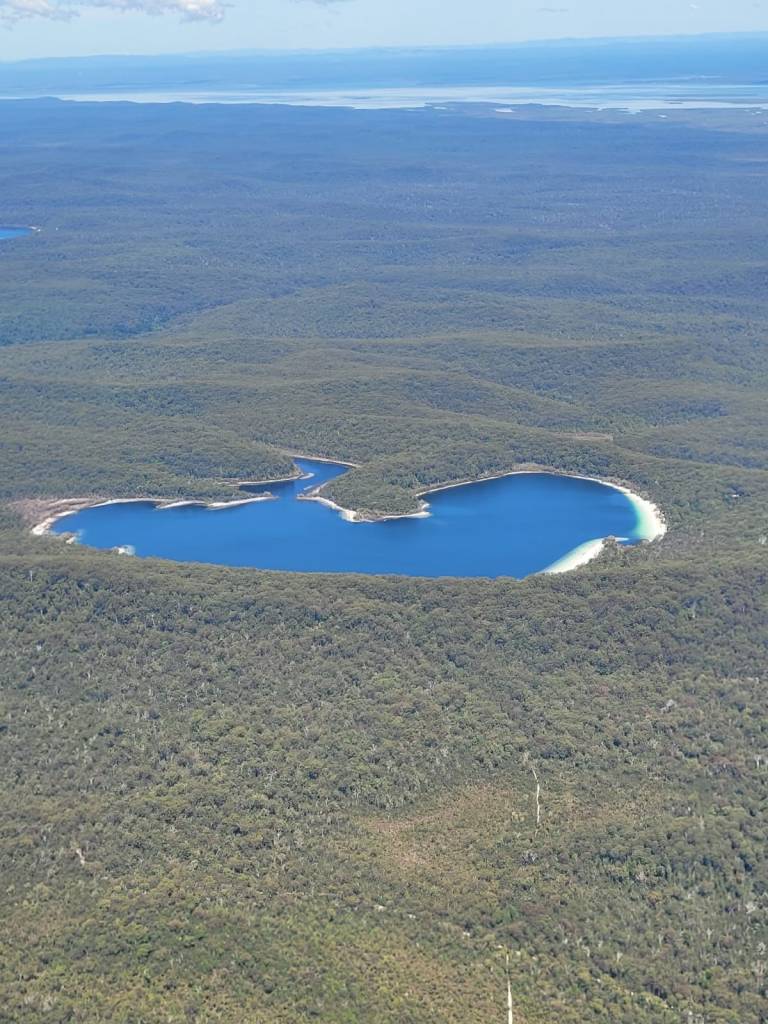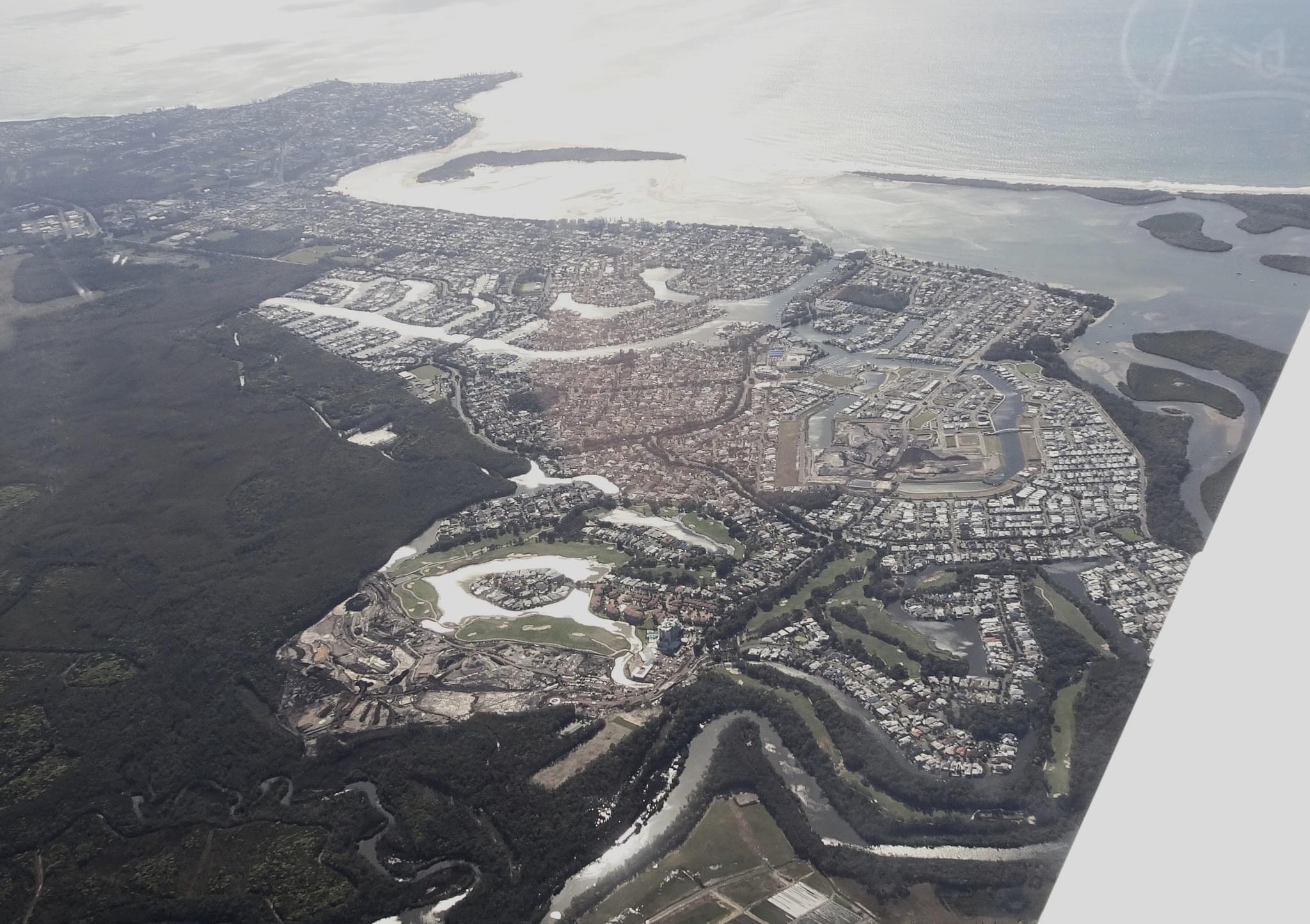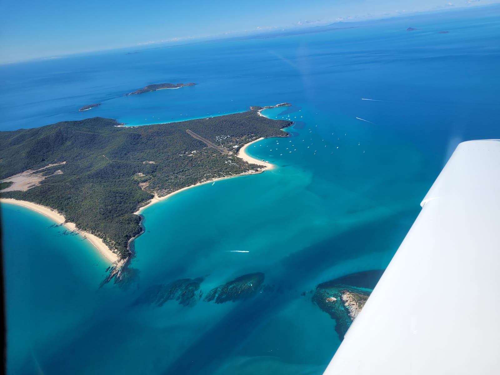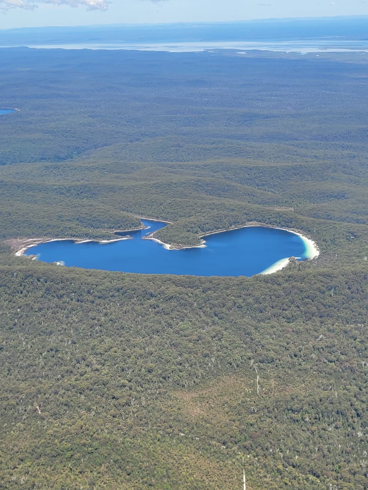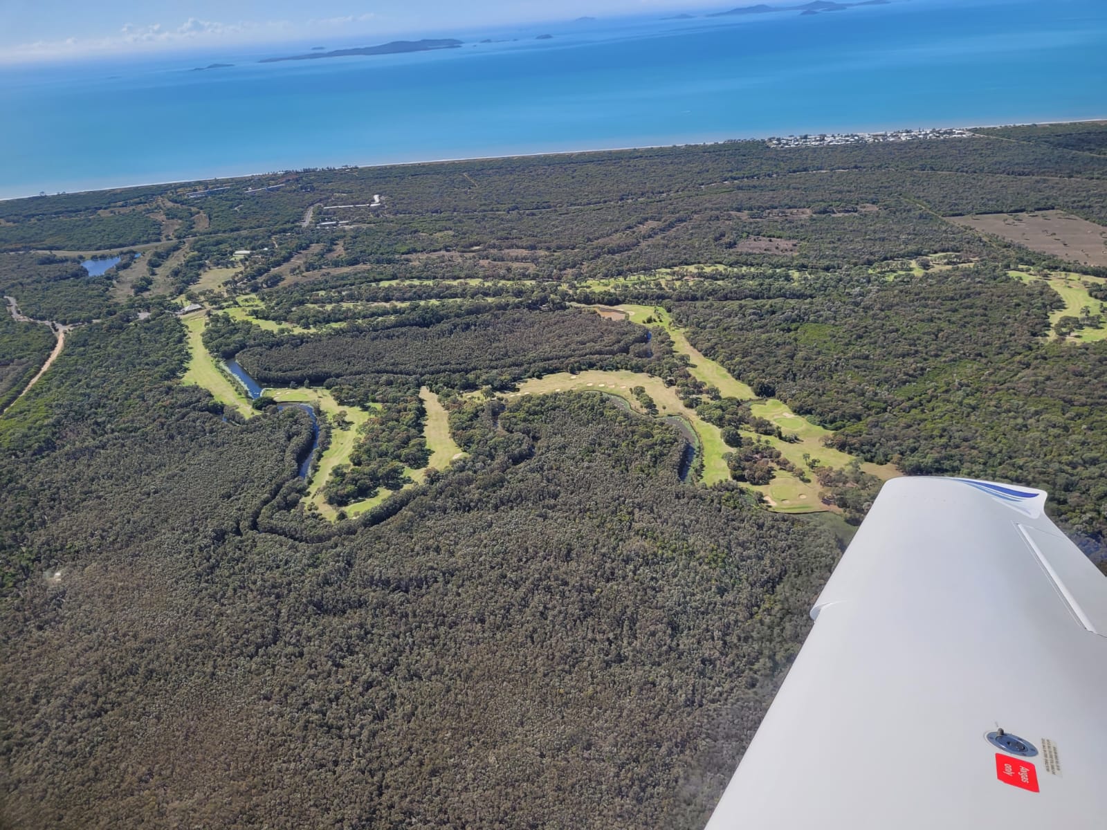 Passing over Agnes Water I pointed out where our block of land is situated and we carried on to Bargara, where we spotted the golf courses we’d played on in 2021. Soon we were passing a very busy Hervey Bay with numerous aircraft coming and going, and crossed over to Fraser Island where we passed directly over Lake McKenzie with its pristine white sand beaches.