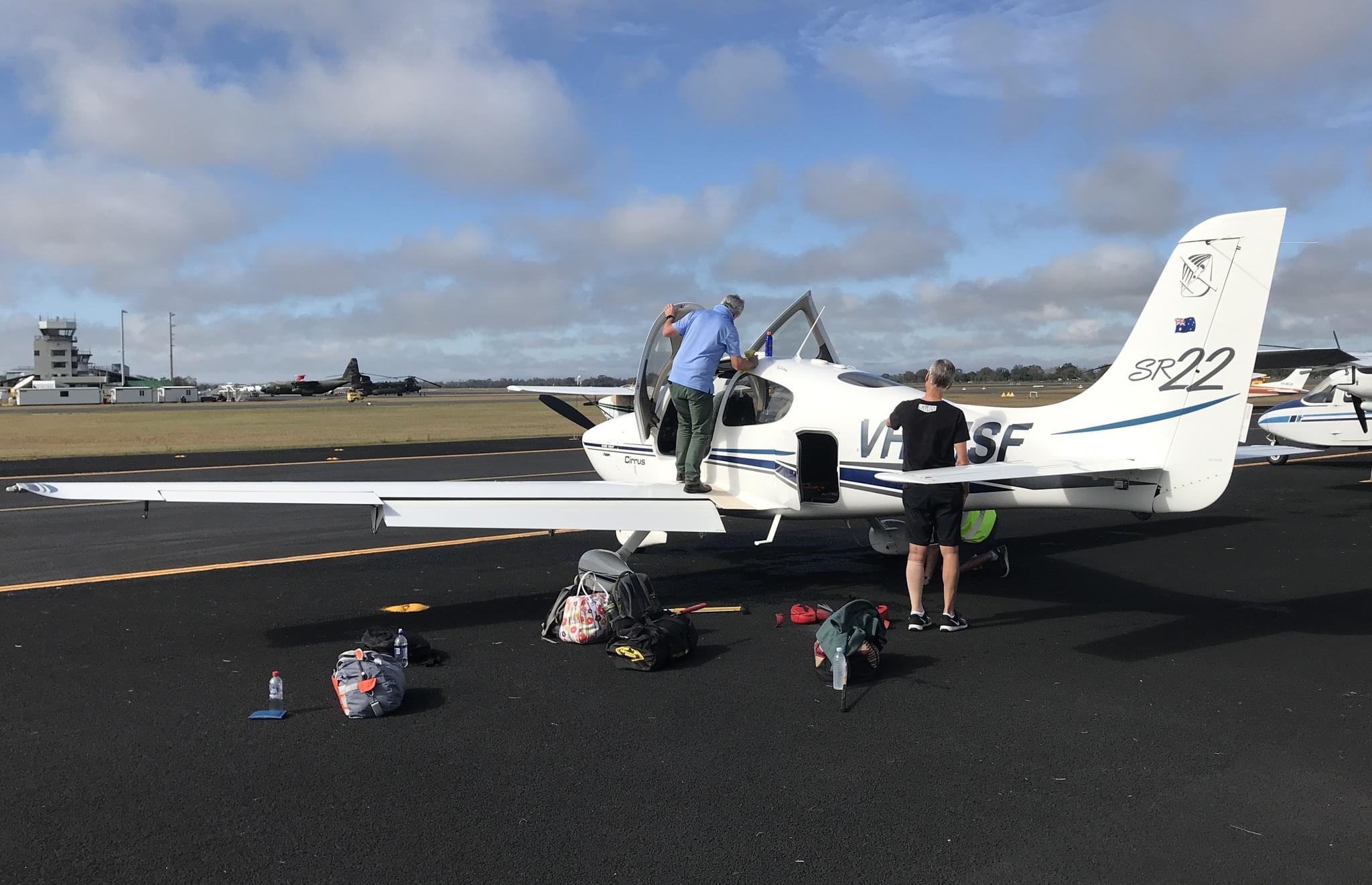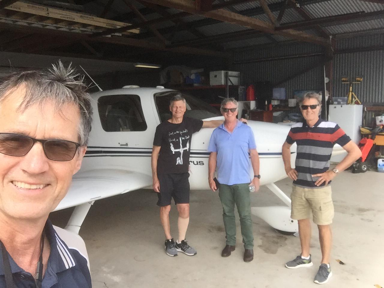 The weather had been a bit poor in the days leading up to our departure but cleared enough so that we could make the trip, with the weather in Yeppoon looking like it’d be warm and sunny. We wanted to hit off at 1pm so time was of the essence. Ted picked us up at 6:45 and as we drove out to Redcliffe I played Mike’s preflight video on the Ipad for Peter’s benefit. Peter hadn’t flown in the Cirrus before while Ted and Mark had both flown a couple of times so were old hands. As with all newbies, Peter was impressed by the airframe parachute and the overall design of the Cirrus.