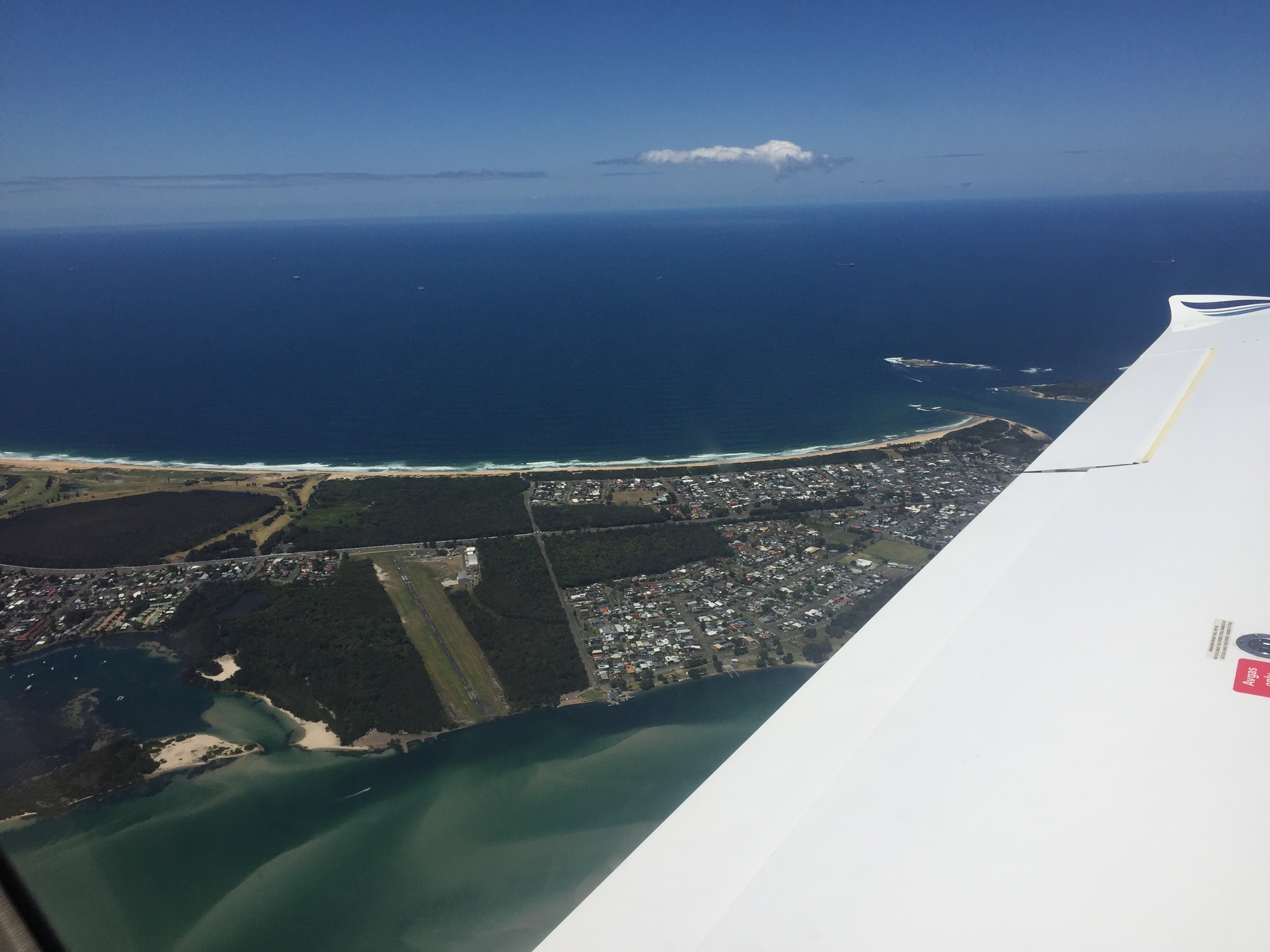 Passing out of Williamtown controlled airspace we climbed to 2500ft and tracked for Warnervale, our lunch stop. We passed over the Lake Macquarie airstrip on the way.