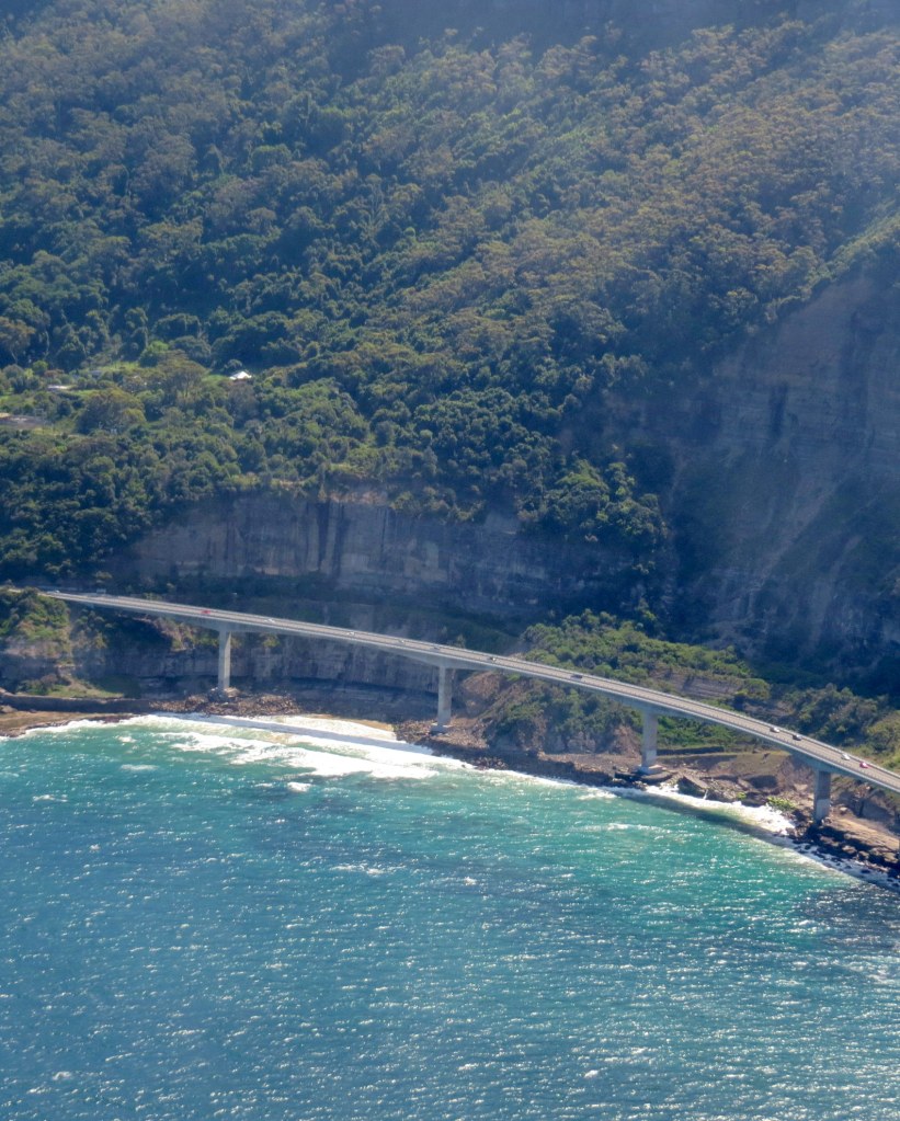 Our flightpath then took us past the 665 metre long Sea Cliff Bridge, a highlight along the Grand Pacific Drive on the coast of the Royal National Park.