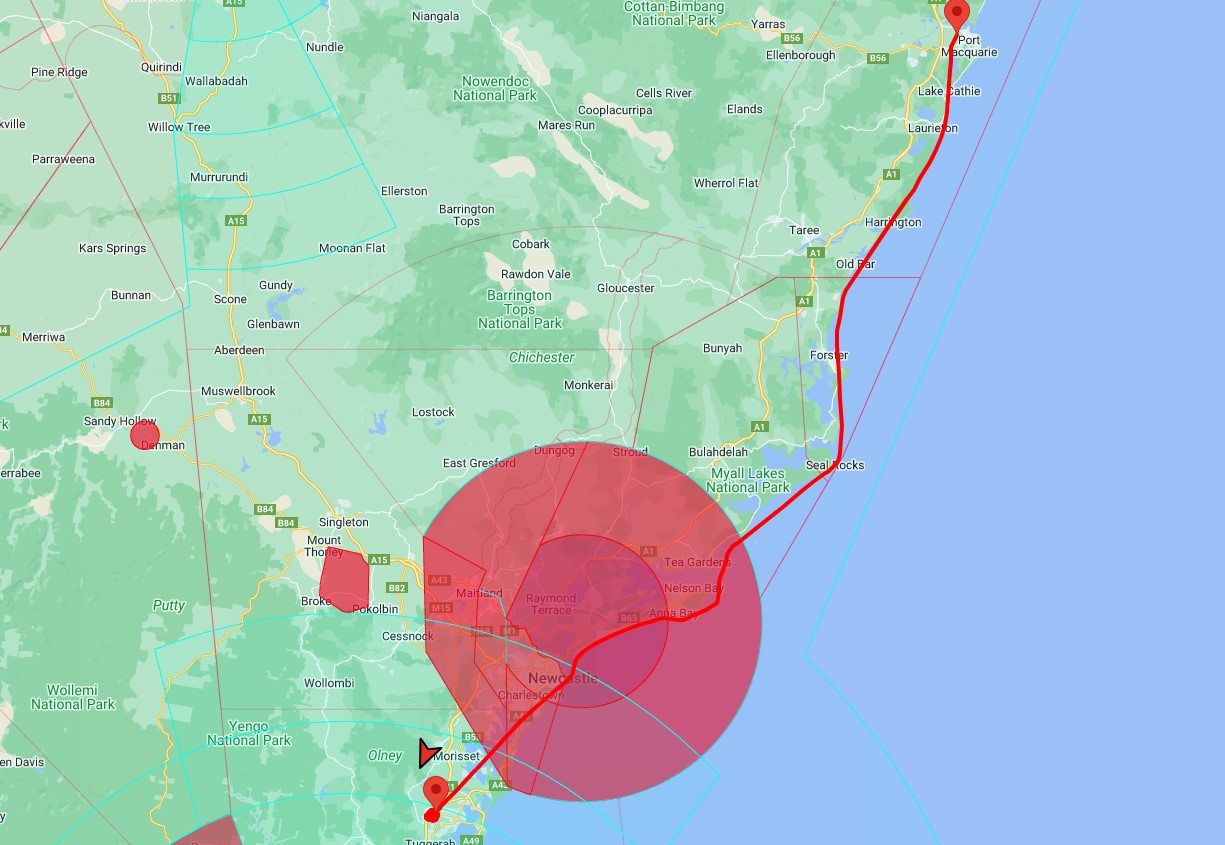 From there it was on past the mouth of the Hunter River and Newcastle.