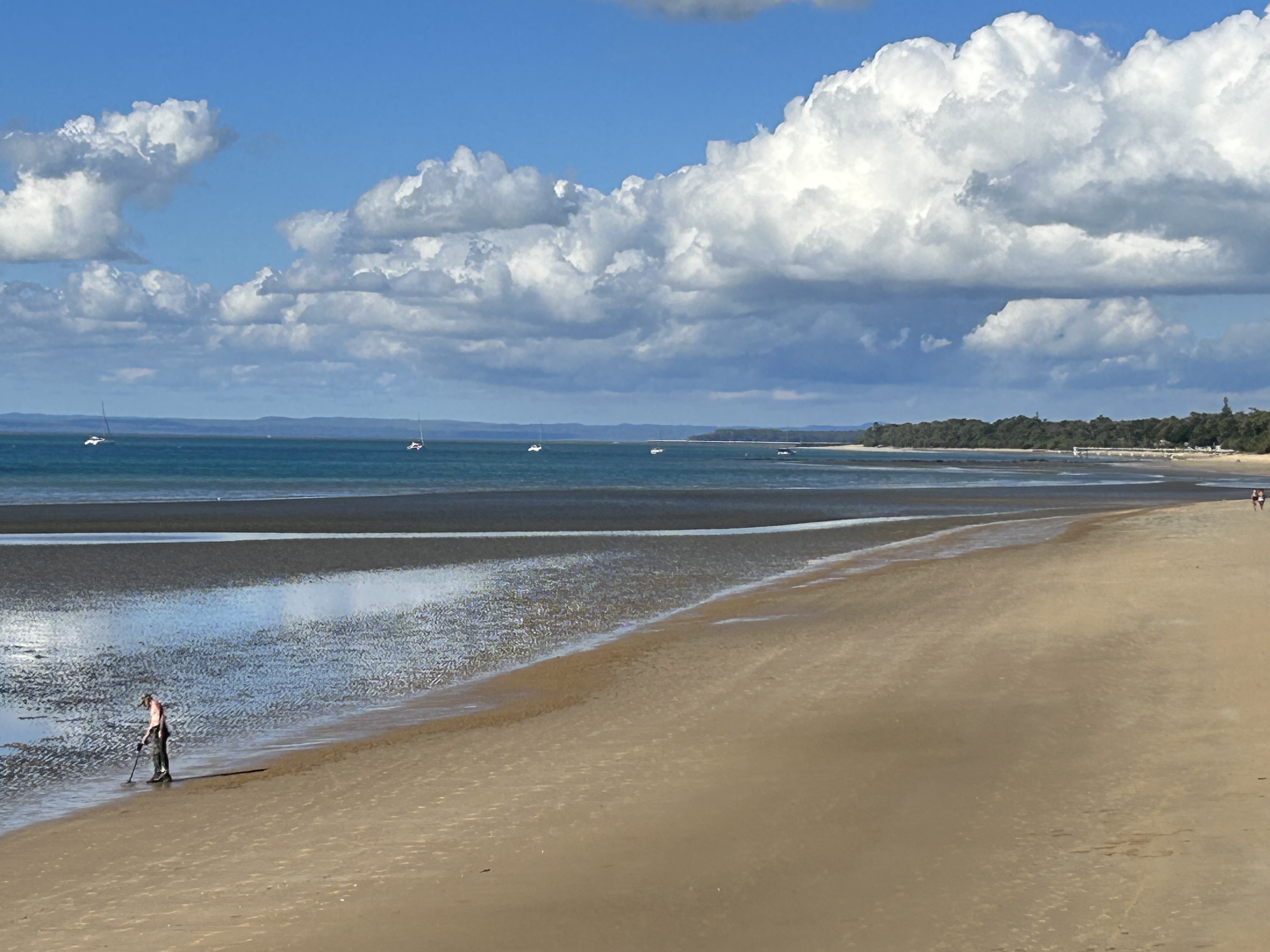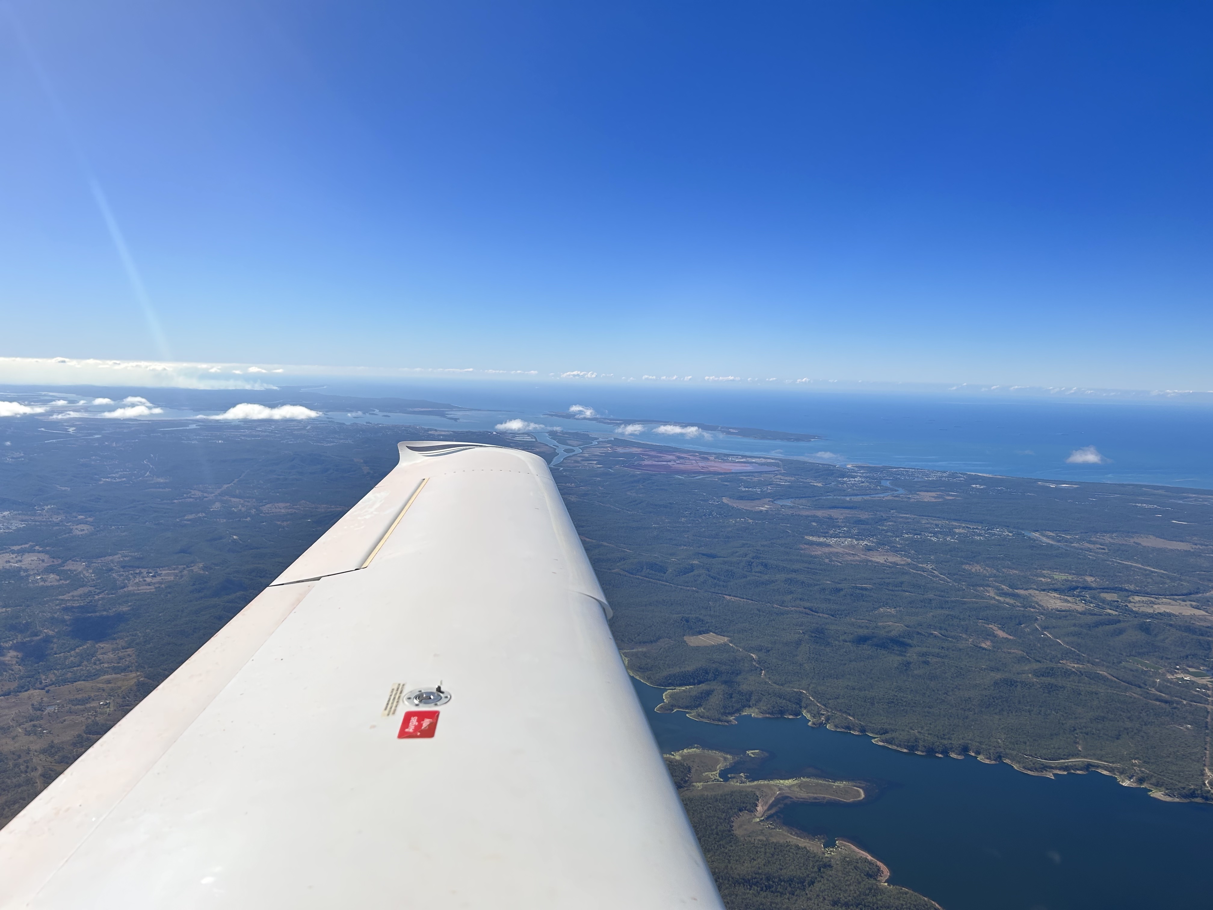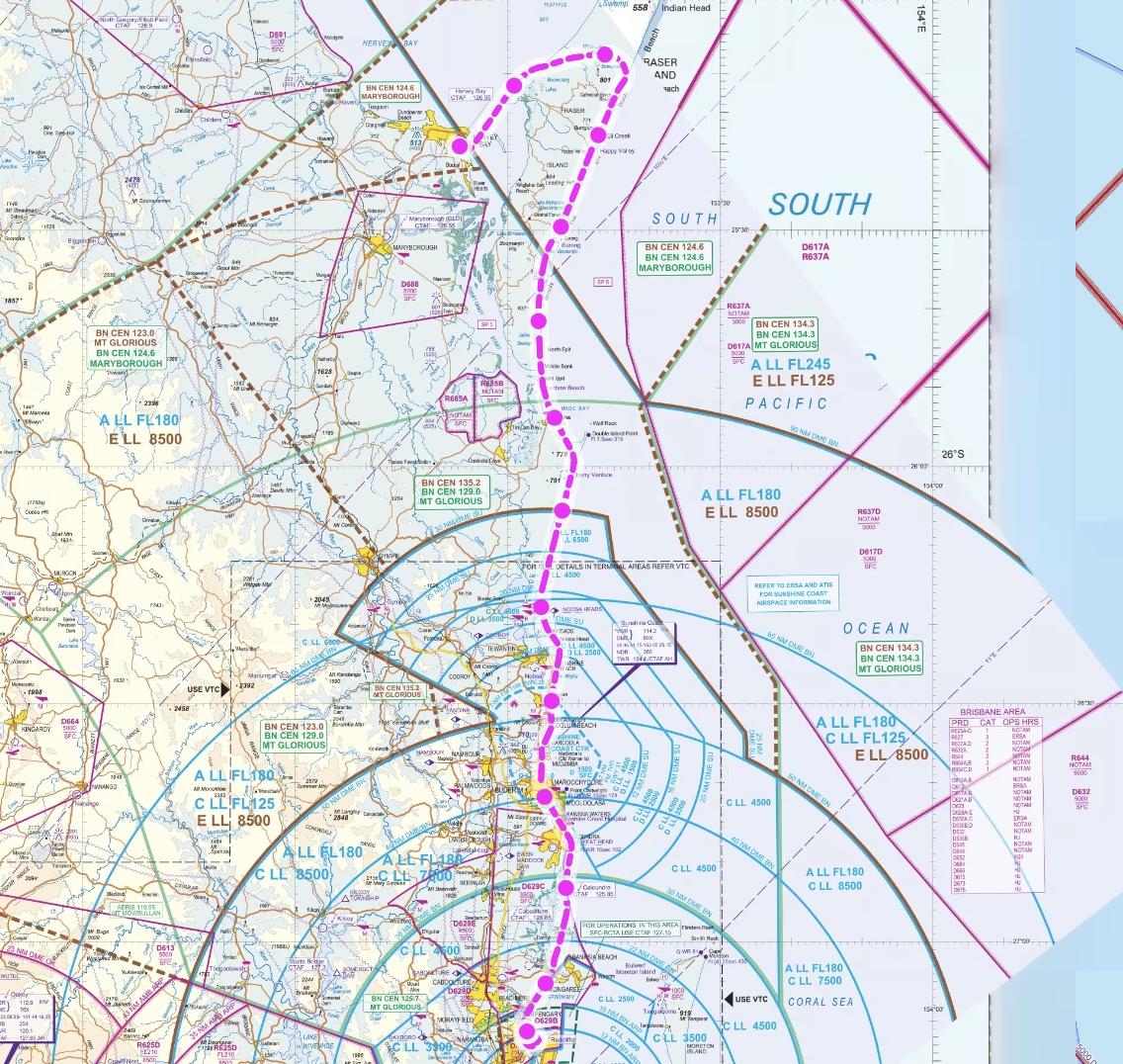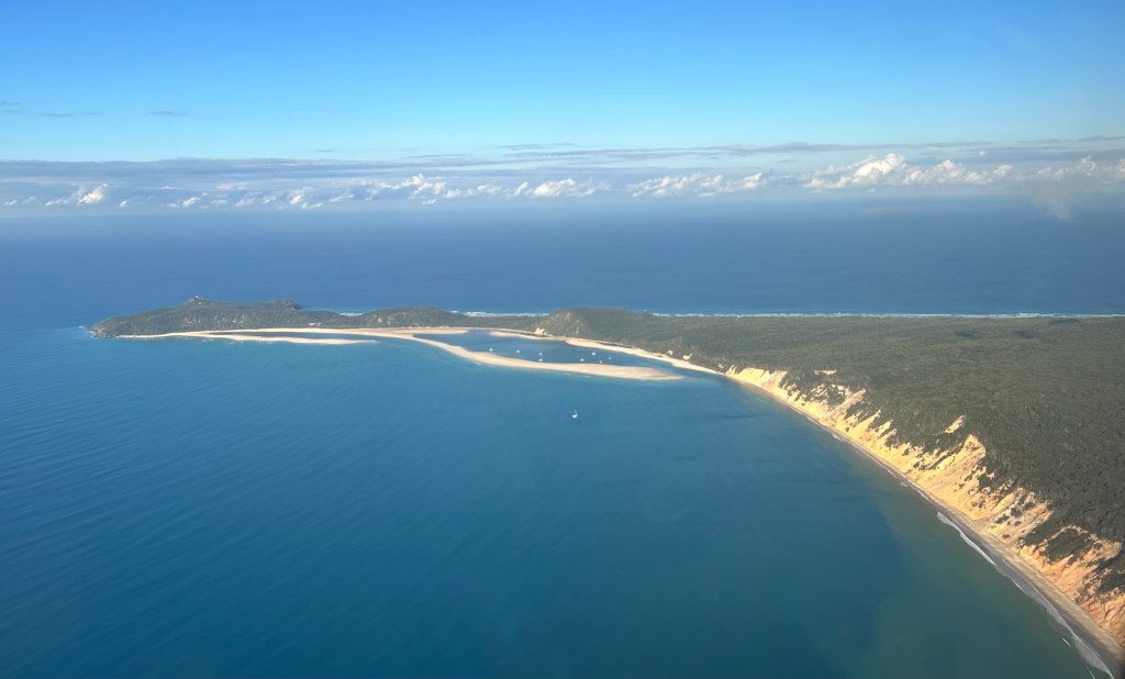 Taking to the air again we tracked for K’gari Fraser Island and flew down the coast at 2000ft past Cathedral Beach, Ely Creek, Eurong and on to Double Island Point before reaching Noosa. A Virgin 737 was taking off from Sunny Coast so we had to fly over the top of the airport to avoid his wake turbulence then on past Caloundra and over Bribie Island to Redcliffe.