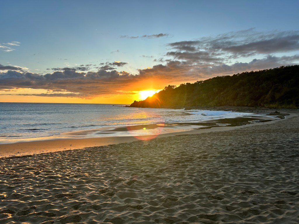 We descended into Agnes Water, still our favourite beach resort, where we’d decided to spend the last two nights of the trip. A few stratocumulus clouds met us as we approached the coast. The first real clouds we’d seen for nearly three weeks. As recommended by resident “ARO” Woody, we did a 300ft overfly to chase away any lingering kangaroos and then returned for a full stop. It was time to relax and enjoy an east coast sunset and sunrise for a change.