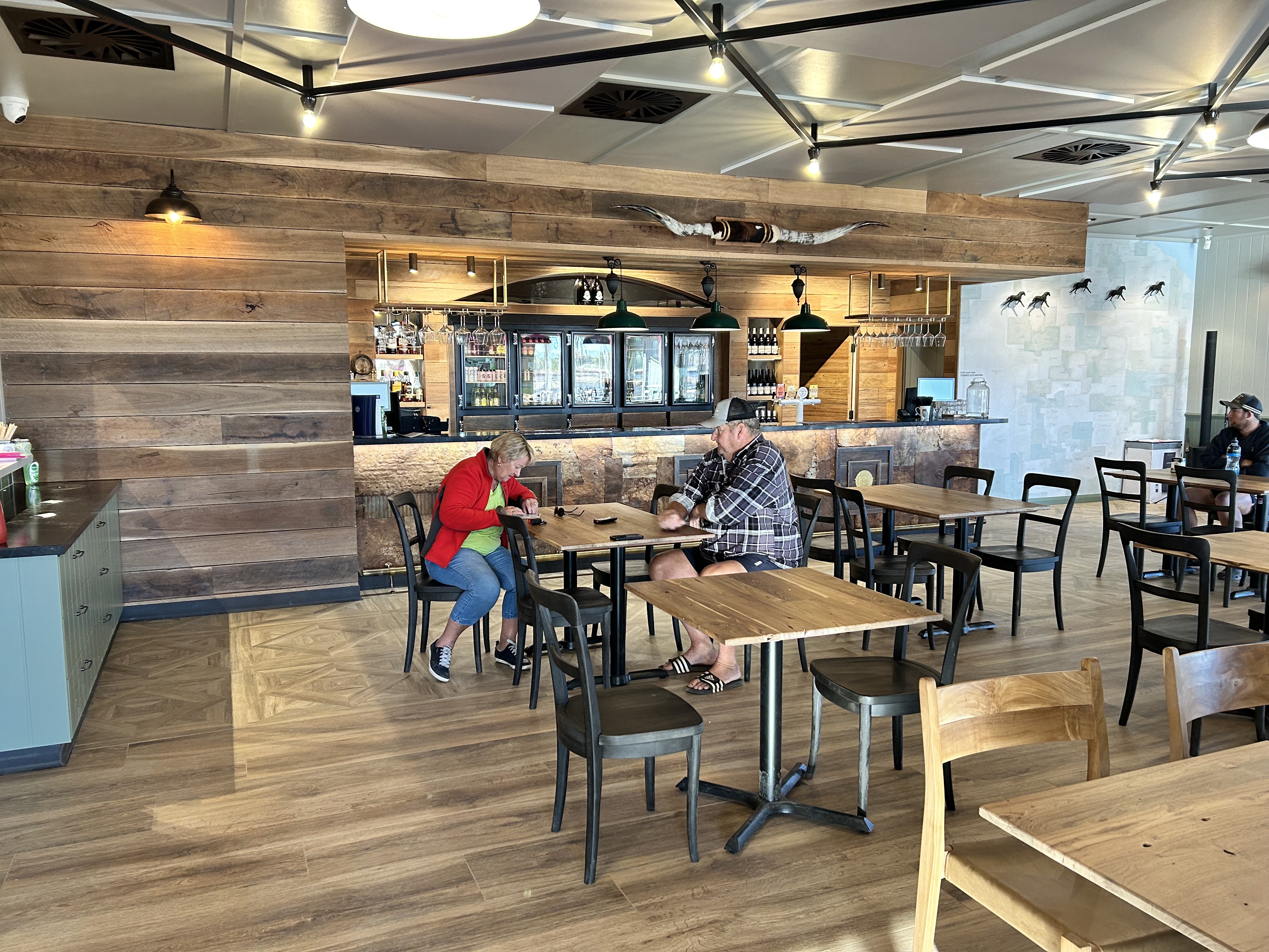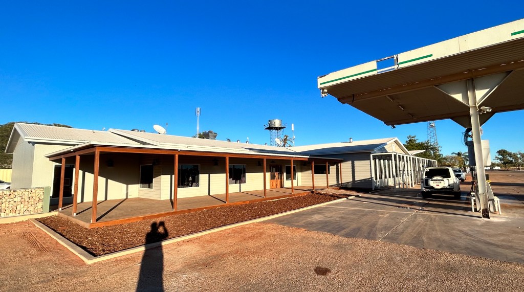 After filling up again we pushed MSF back into a gap between the building materials that covered the lay down area. And were we impressed by the new buildings? You bet we were. A great new roadhouse complete with live music and all completed in 4 months according to the manager. Quite an achievement.