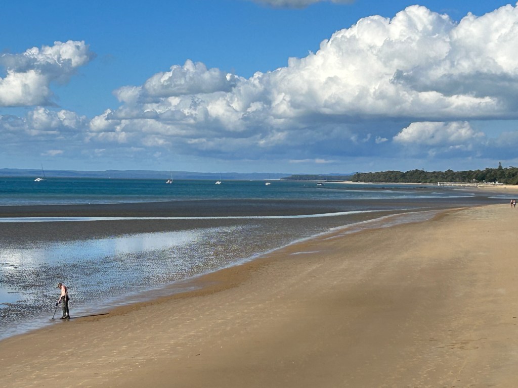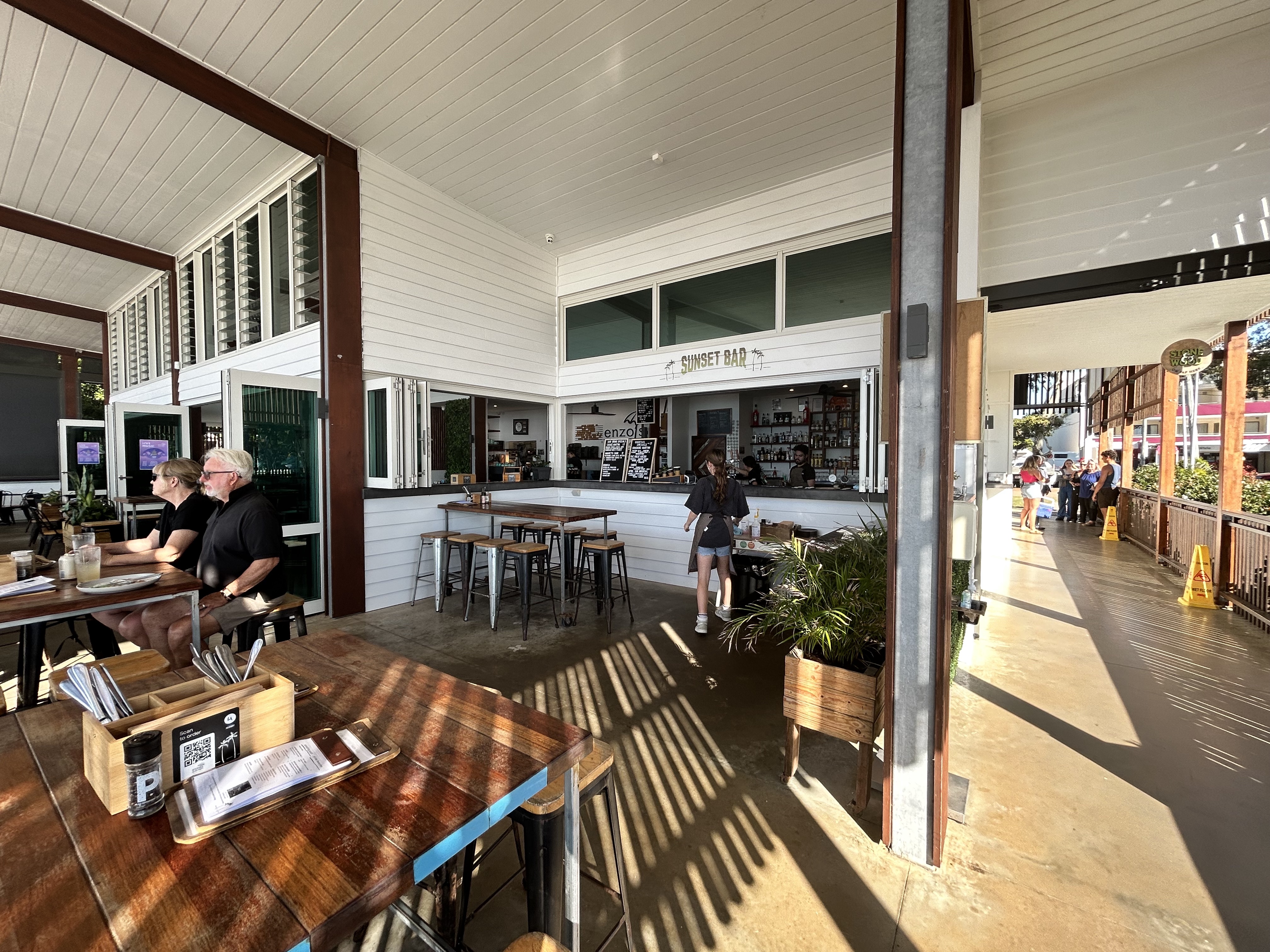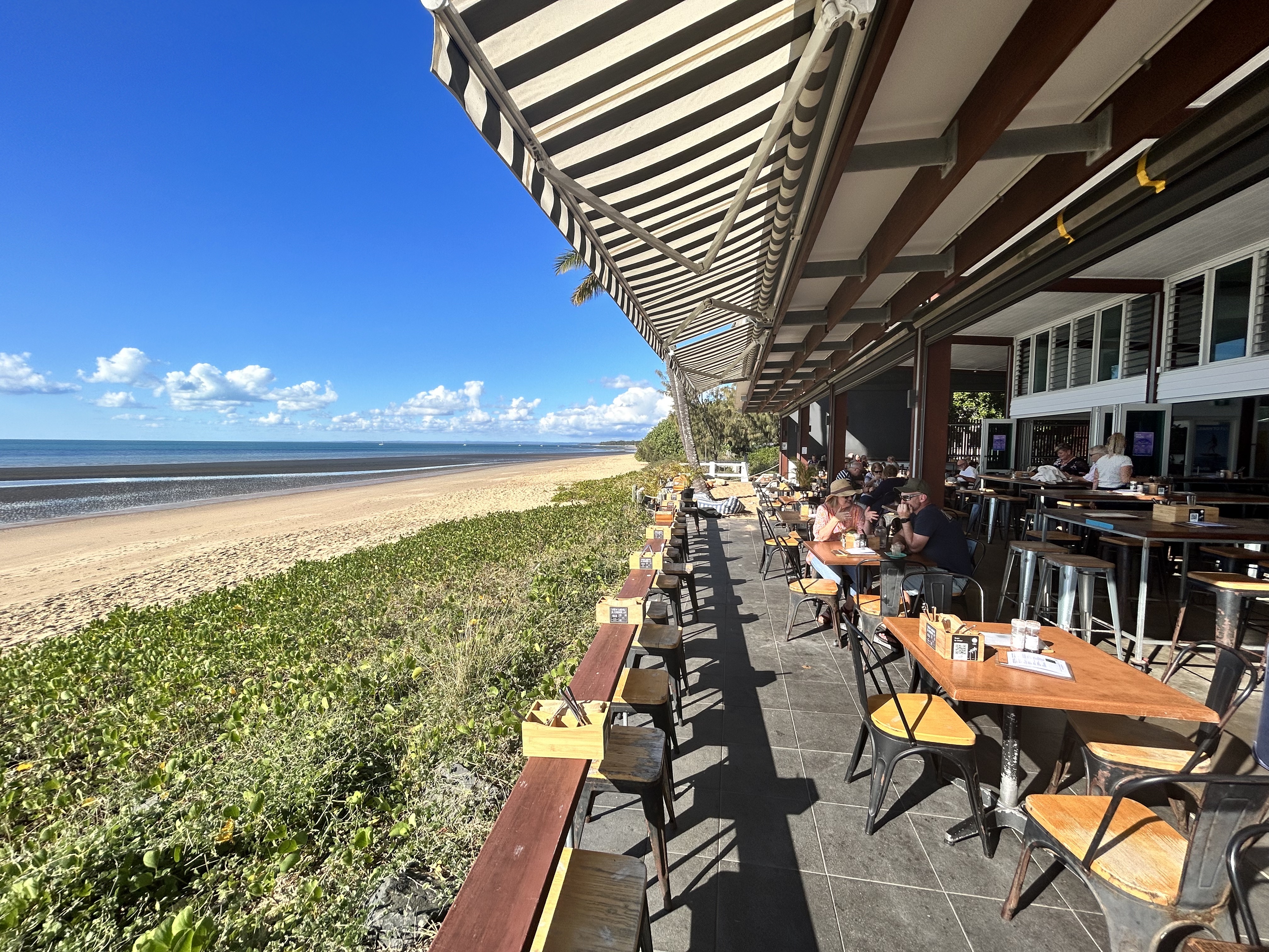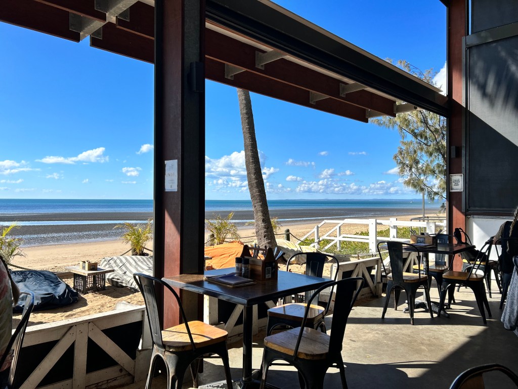 A short taxi ride brought us to Enzo’s on the beach, a great little lunch spot where we could enjoy fish and chips while gazing across the water to K’Gari Fraser Island.