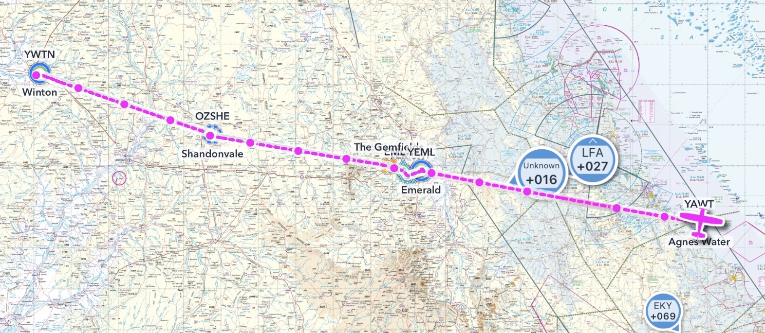 After breakfast Adam dropped us back at the airport. Our track to Emerald had us passing directly over Shandonvale so we couldn’t resist a couple of orbits at 5000ft to say G’day to Deon and Lane.
