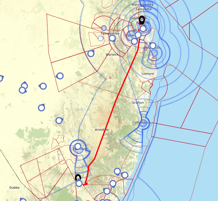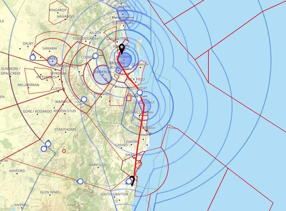 Brett was PIC again with Mike as copilot and he’d initially planned via Port Macquarie and Coffs but ATC cleared us direct shortly after takeoff so we went that way.