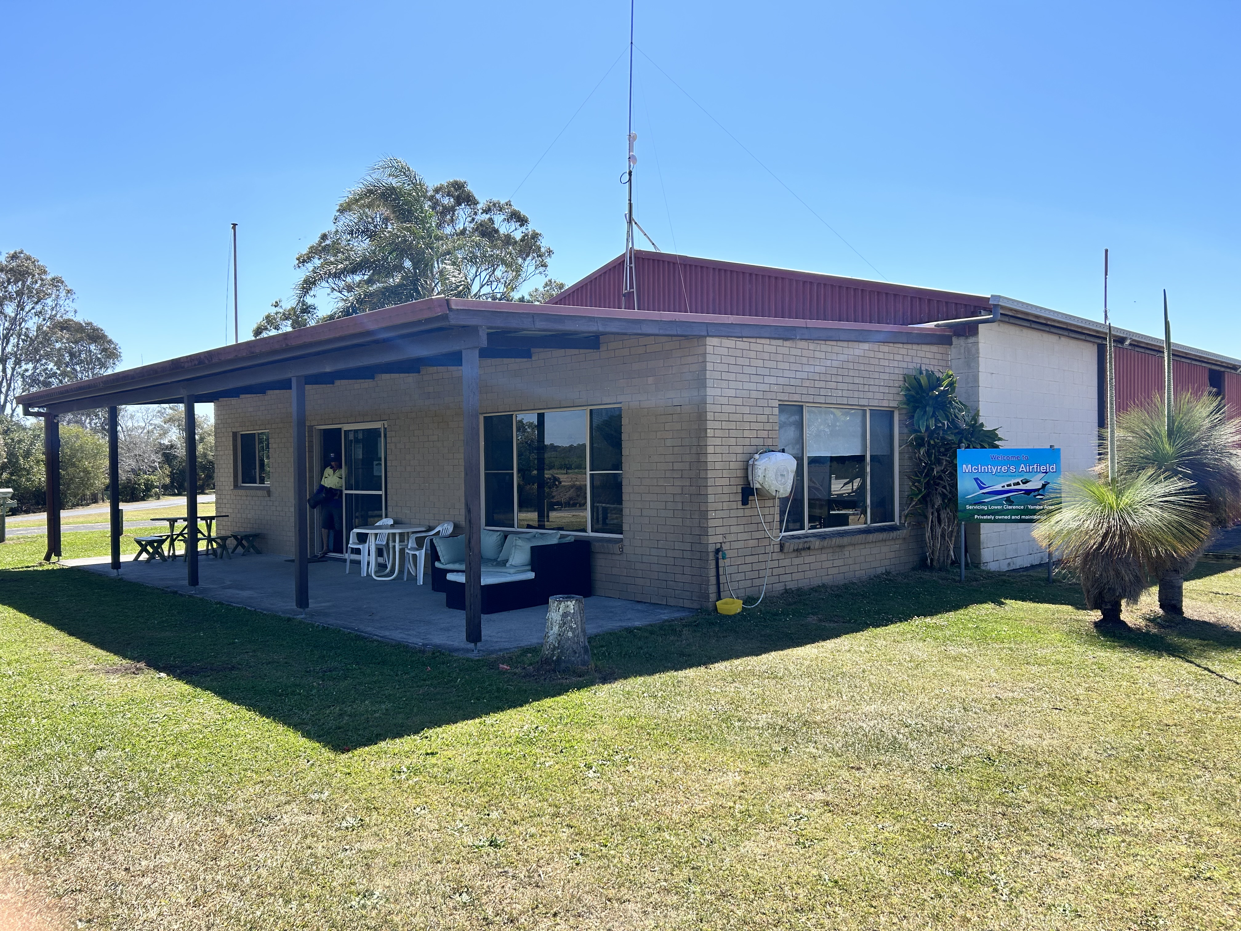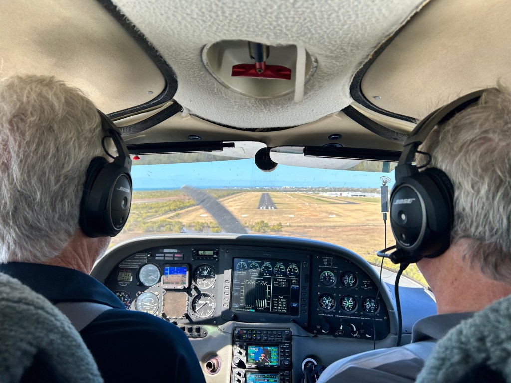 McIntyre’s Airfield is a privately owned and maintained ALA situated 4nm from Yamba. It is kept in immaculate condition but can be a bit hard to spot from the air. We’d actually flown right over the top of it before we identified it. Brett was a bit fast on his first approach so did a go around and landed smoothly on his second attempt.