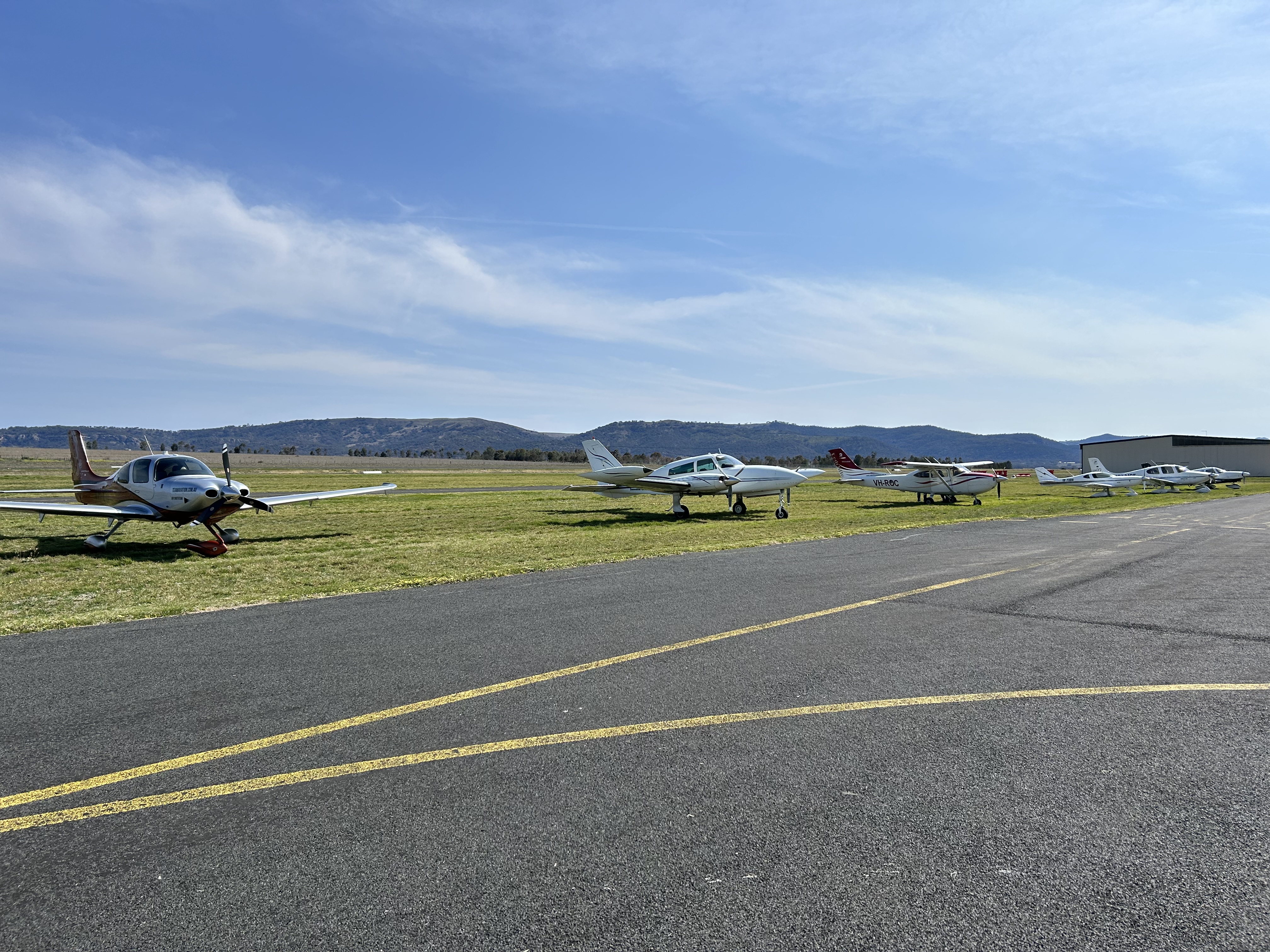 The Temora Aviation Museum hosts monthly air shows and it was decided to organise an aero club flyaway to attend their September 2023 airshow while basing ourselves at Mudgee for the weekend. Six aircraft took part with Mike Cahill, Brett Silvester and me in MSF, Bryan Galvin, Mike Gardiner and Gary Ayre in Cherokee BHN, Sam Keenan, his wife Jac, and daughters Ava and Georgie in C310 JTV, Neil Jensen in 19-7360, Paul Smeath, son Ben and grandson Josh in C182 ROC and Peter Nally with three friends in Cirrus YVR.