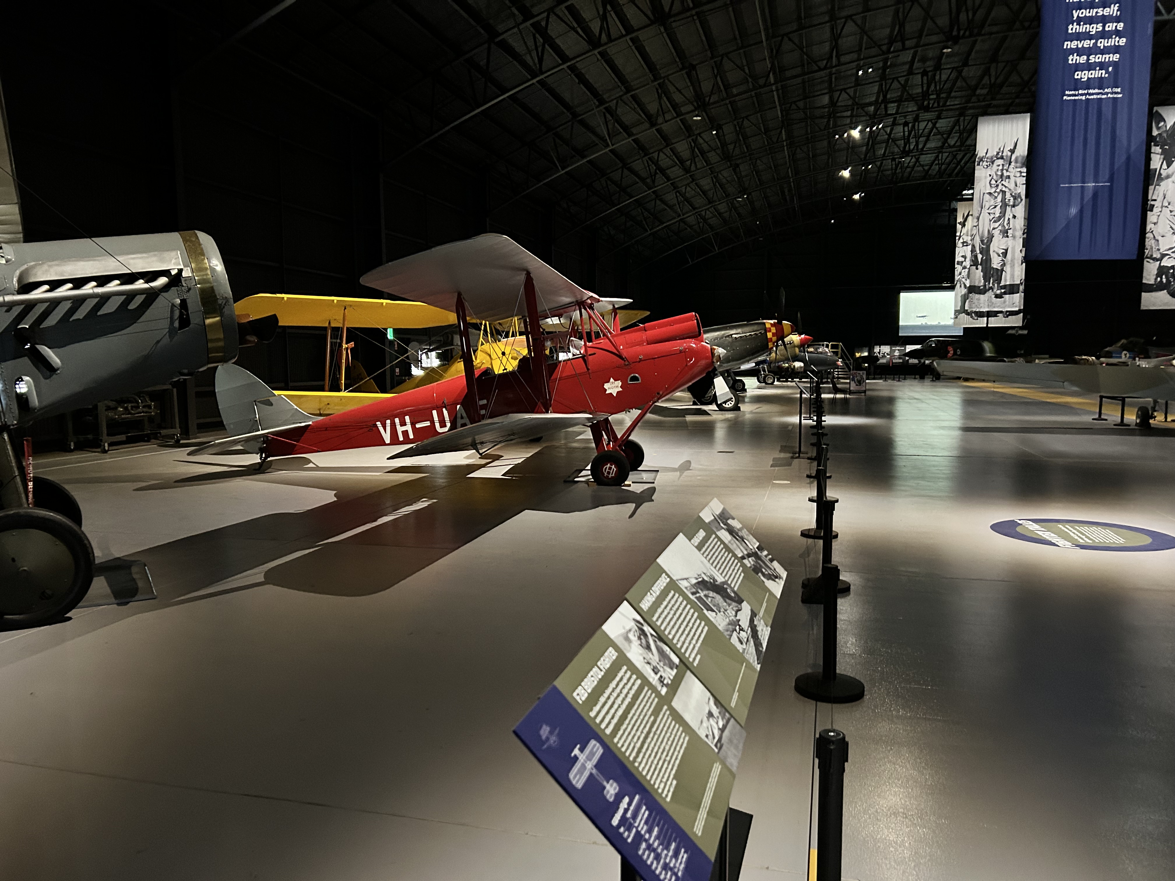 The airshow was well attended, hosting thousands of visitors on the day. Flying displays by the Spitfire, Kittyhawk and Mustang were most impressive as were the Cessna Birddog, Cessna O-2A, Wirraway, Winjeel, Harvard, Tiger Moth, Ryan monoplane, CT4 as well as a PC21, the RAAF’s current ab initio trainer. A flying-condition Hudson bomber was on static display while a flying-condition Canberra bomber undergoing detailed maintenance could be viewed in an adjacent hangar.