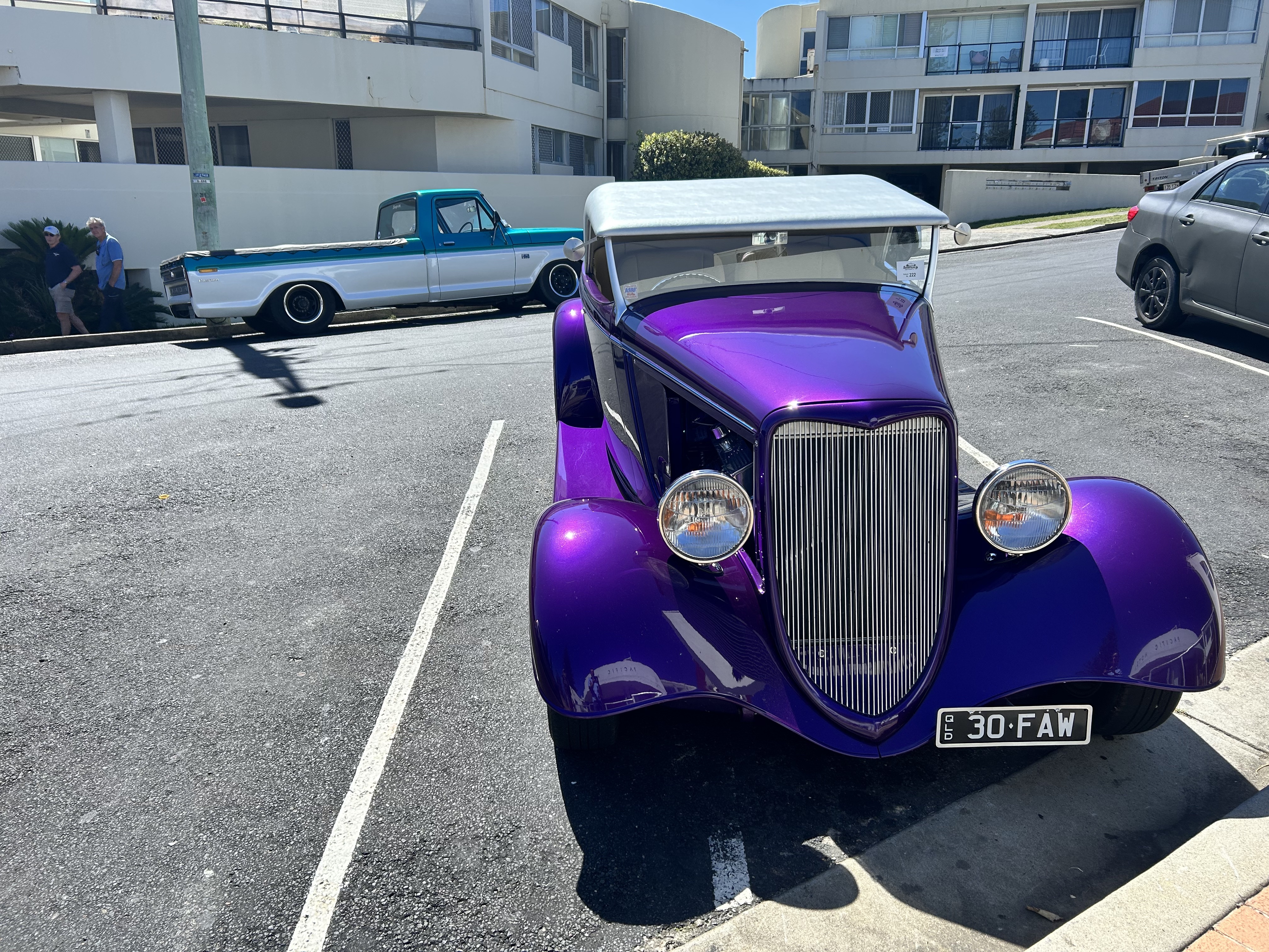 After lunch we stretched out legs with a short walk to the lighthouse and a view of the beach. It was a “hot rod” weekend in Yamba so there are few fancy cars around.